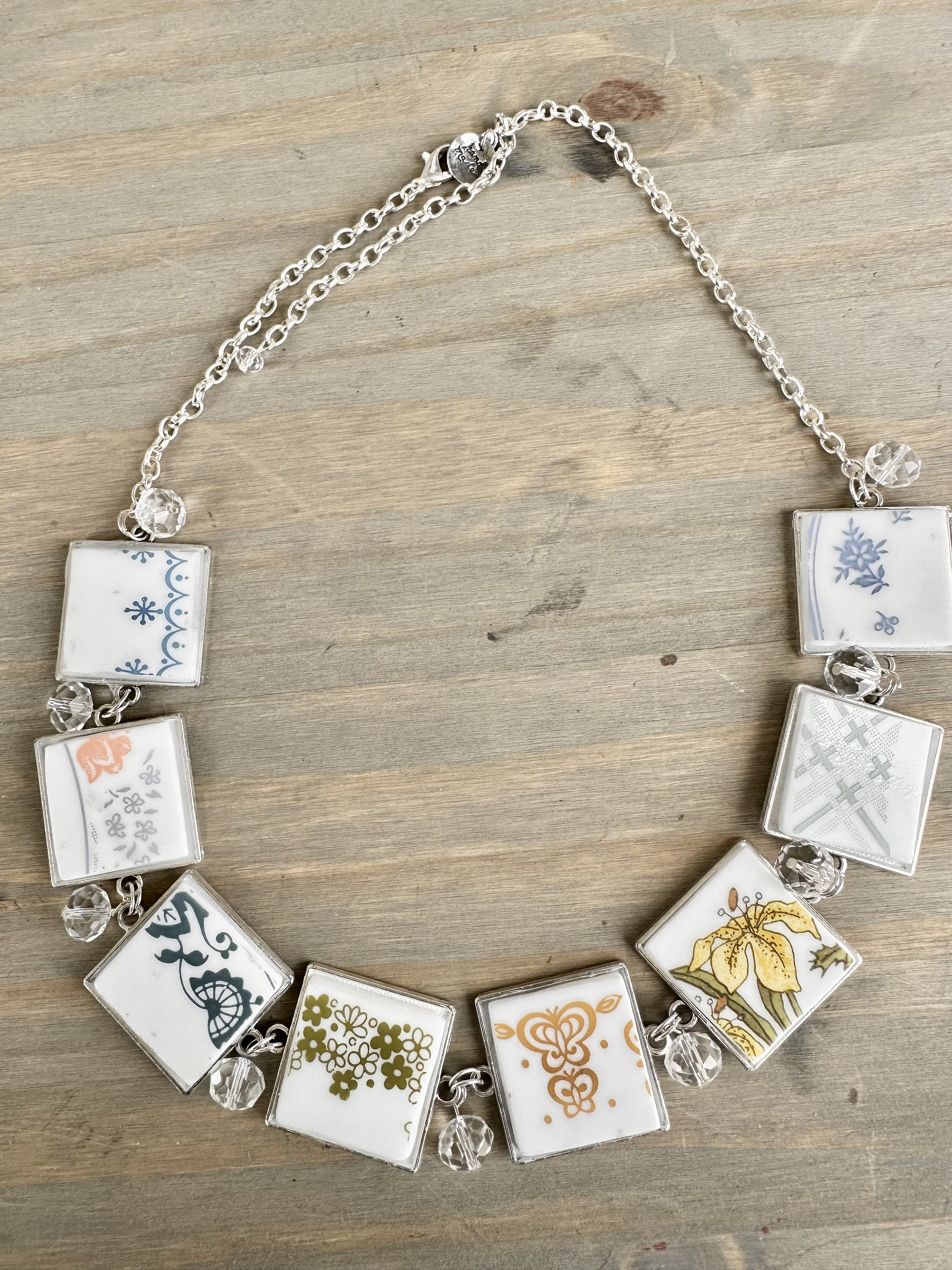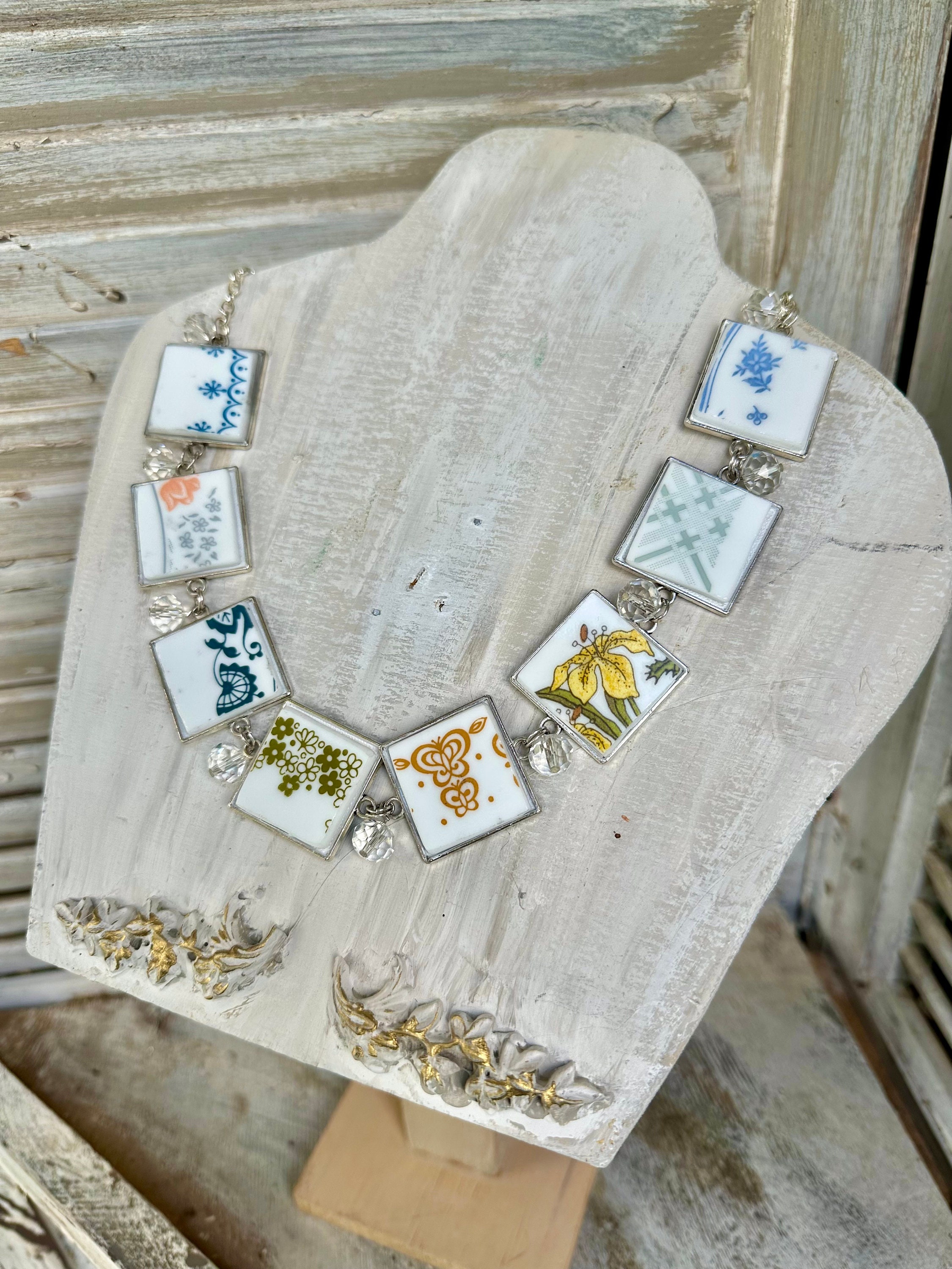 Make a statement with this unique Correlle necklace! Featuring nine of the most iconic vintage Correlle patterns -