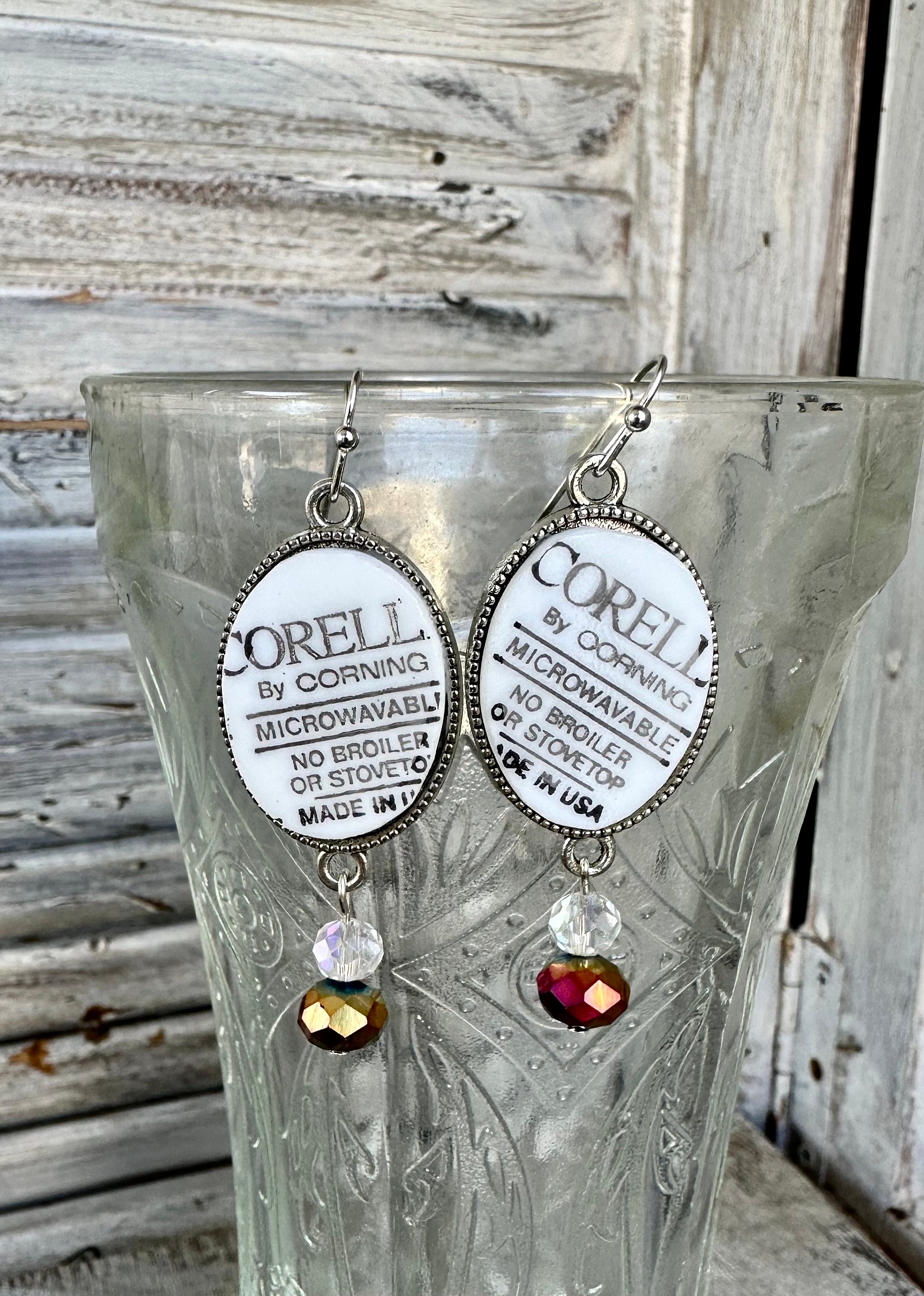 Broken China Jewelry, made out of a Vintage Correlle Plates. Definitely for the Correlle lover. Logo/label cut from 2 different vintage Correlle plates.