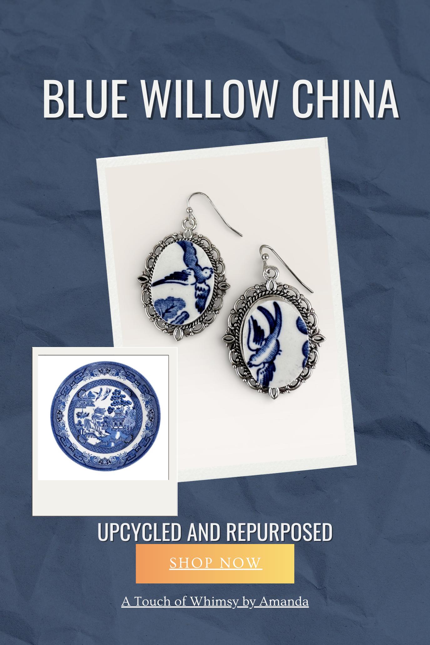 Material: Authentic vintage Churchill Blue Willow china (Made in England).