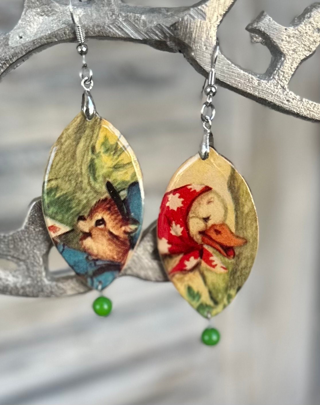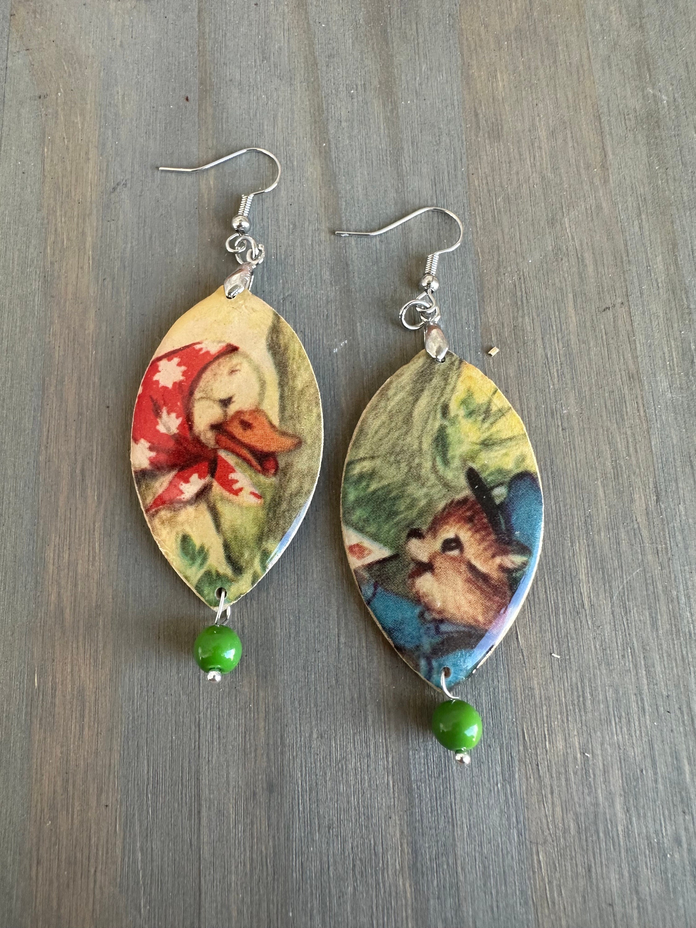 Adorable Vintage Children’s book Wood Earrings /spring/chipmunk/duck