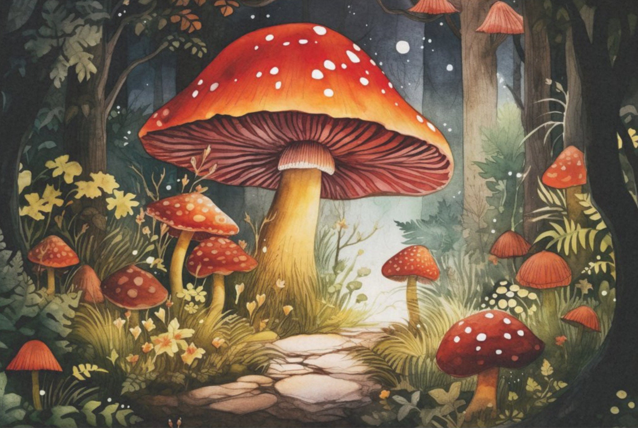 Mushrooms in Forest Decoupage Pape
