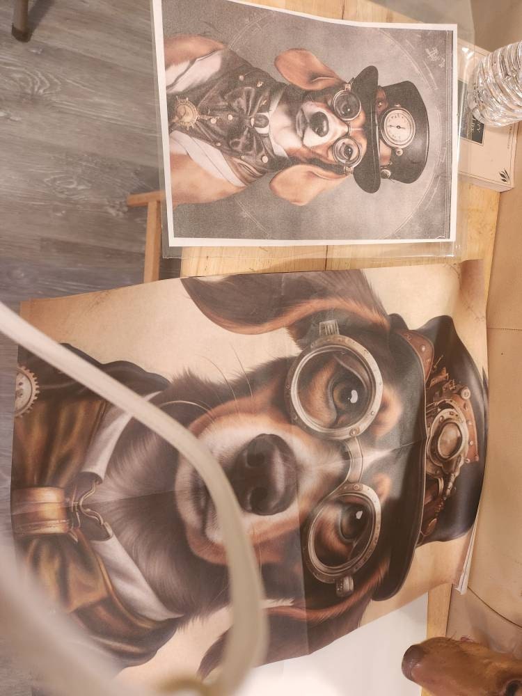 Add a touch of mechanical whimsy to your crafts with this Steampunk Dachshund decoupage paper. This quirky design features a charming sausage dog adorned with Victorian-era industrial accessories—think aviator goggles, a top hat, or a leather vest—set against a backdrop of intricate bronze cogs, wheels, and clockwork parts.