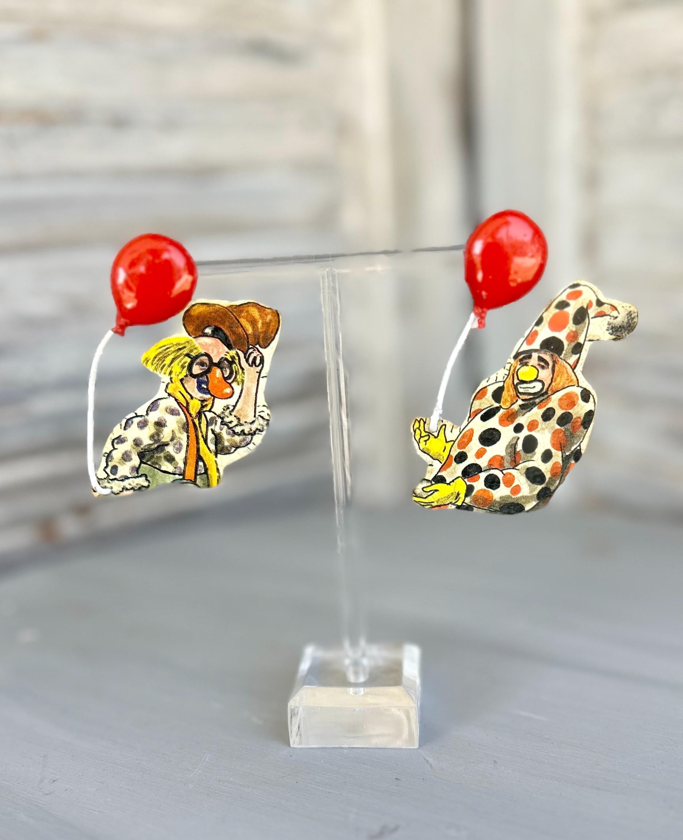 Step into a world of whimsy and nostalgia with our Upcycled Vintage Tin Clown Canister Earrings, a delightful fusion of playful design and sustainable fashion. Each pair is meticulously crafted from authentic vintage clown canisters, giving new life to these charming relics of yesteryear while reducing waste.