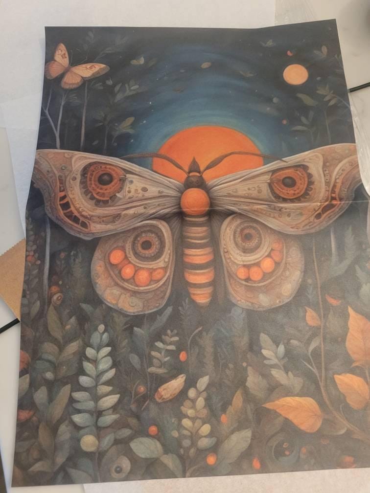 Unleash your creativity with our enchanting Moonlit Moth Decoupage Tissue Paper. This stunning design features a beautifully detailed moth illuminated by the soft glow of moonlight, capturing the essence of nature's magic. Perfect for a variety of crafting projects, including scrapbooking, home décor, and gift wrapping, this tissue paper adds a whimsical yet elegant touch to your artistic endeavors.
