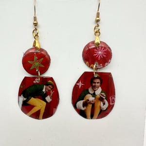 Celebrate the magic of the holidays with our unique Buddy the Elf tin earrings, lovingly crafted from upcycled cookie tins! Each pair is hand-cut and meticulously filed to create a one-of-a-kind accessory that showcases your love for this beloved movie.