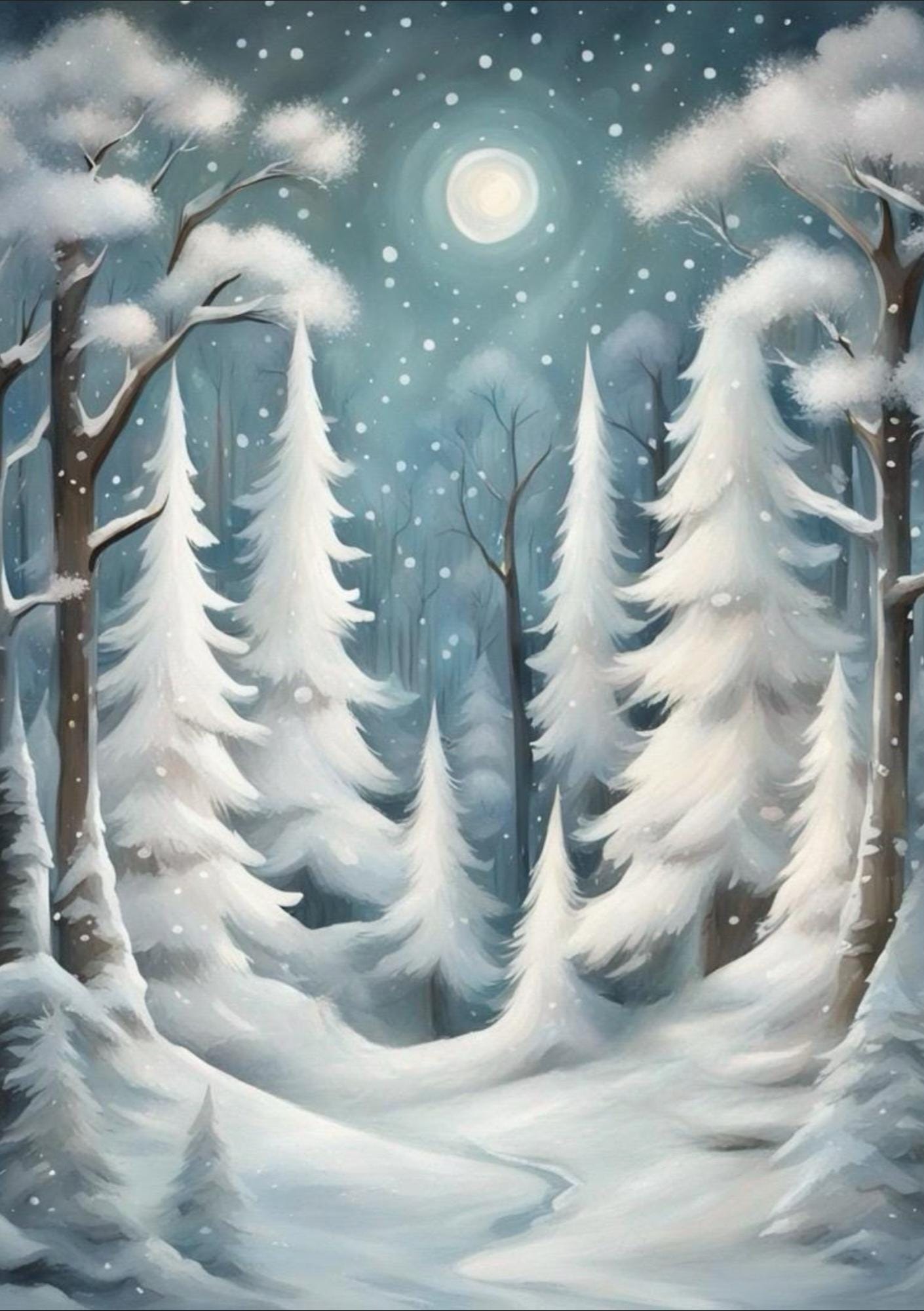 Transform your furniture or crafts with this enchanting winter landscape tissue paper. Soft white snowflakes drift across a muted green background, featuring delicate evergreen branches and snow-covered trees. Ideal for decoupage, scrapbooking, and mixed media projects, this high-quality tissue paper brings a serene winter scene to your creative work.