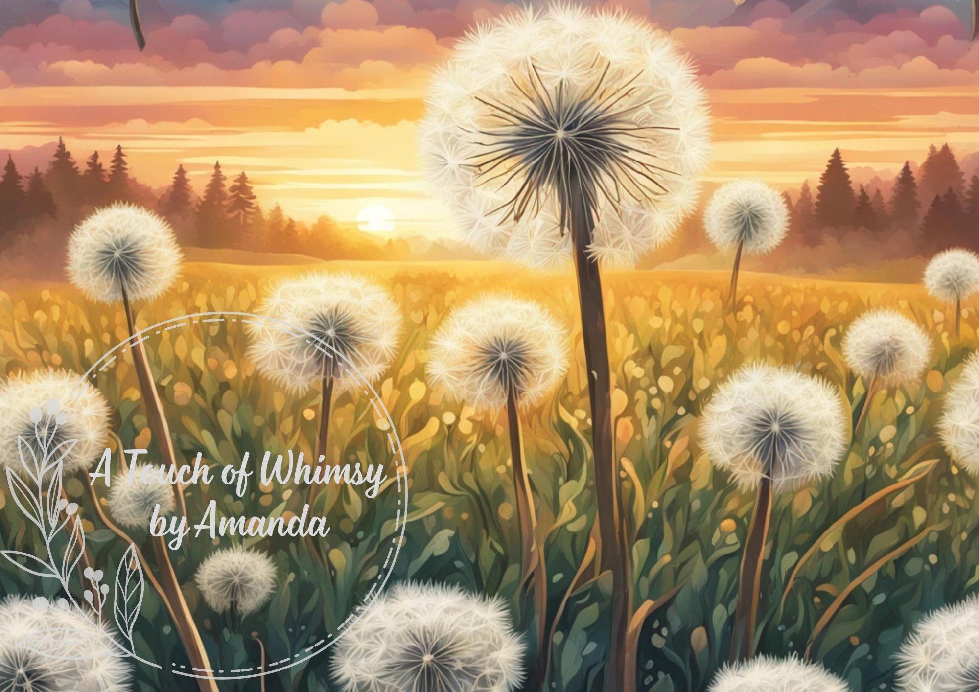 Dandelions in Sunset Field Flower Decoupage Rice Paper A4