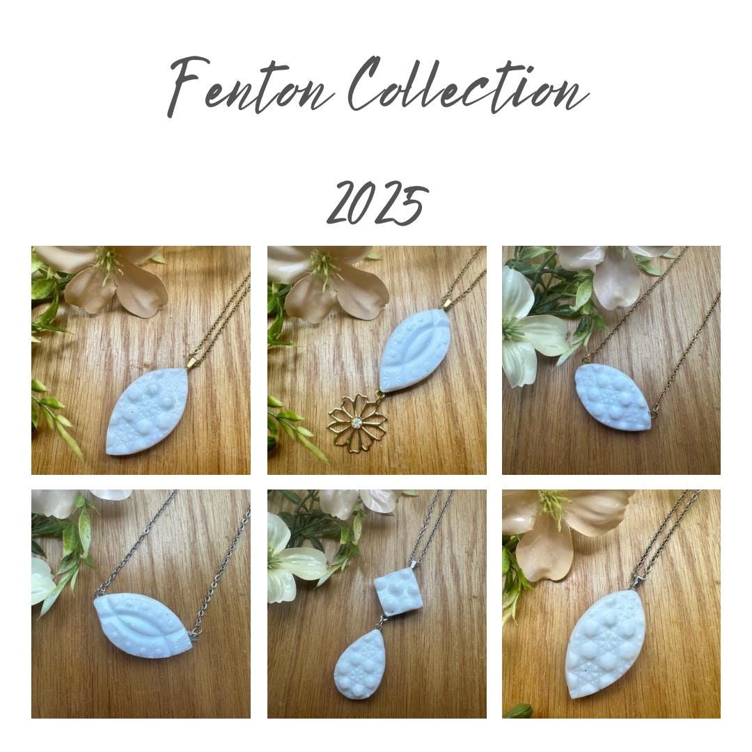 Discover the unique charm of our Handmade Fenton Candlestick Necklace, a stunning piece that seamlessly blends vintage elegance with contemporary design. Each necklace is meticulously crafted from a reclaimed Fenton candlestick, ensuring that no two pieces are alike. The pendant features hand-cut, ground, and polished details that showcase the intricate beauty of the original glass.