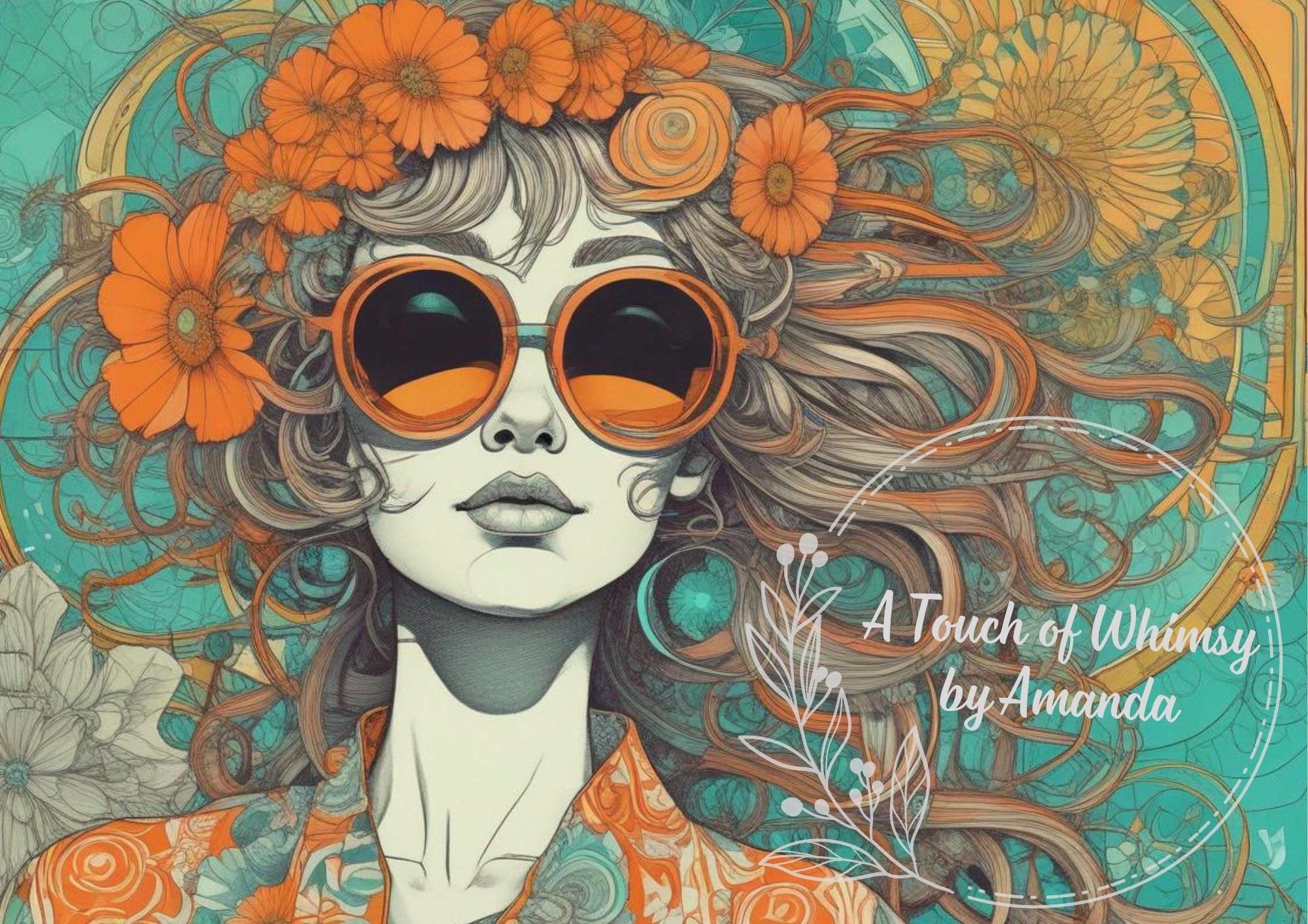 Colorful Bohemian Lady in Orange Decoupage Rice Paper A4