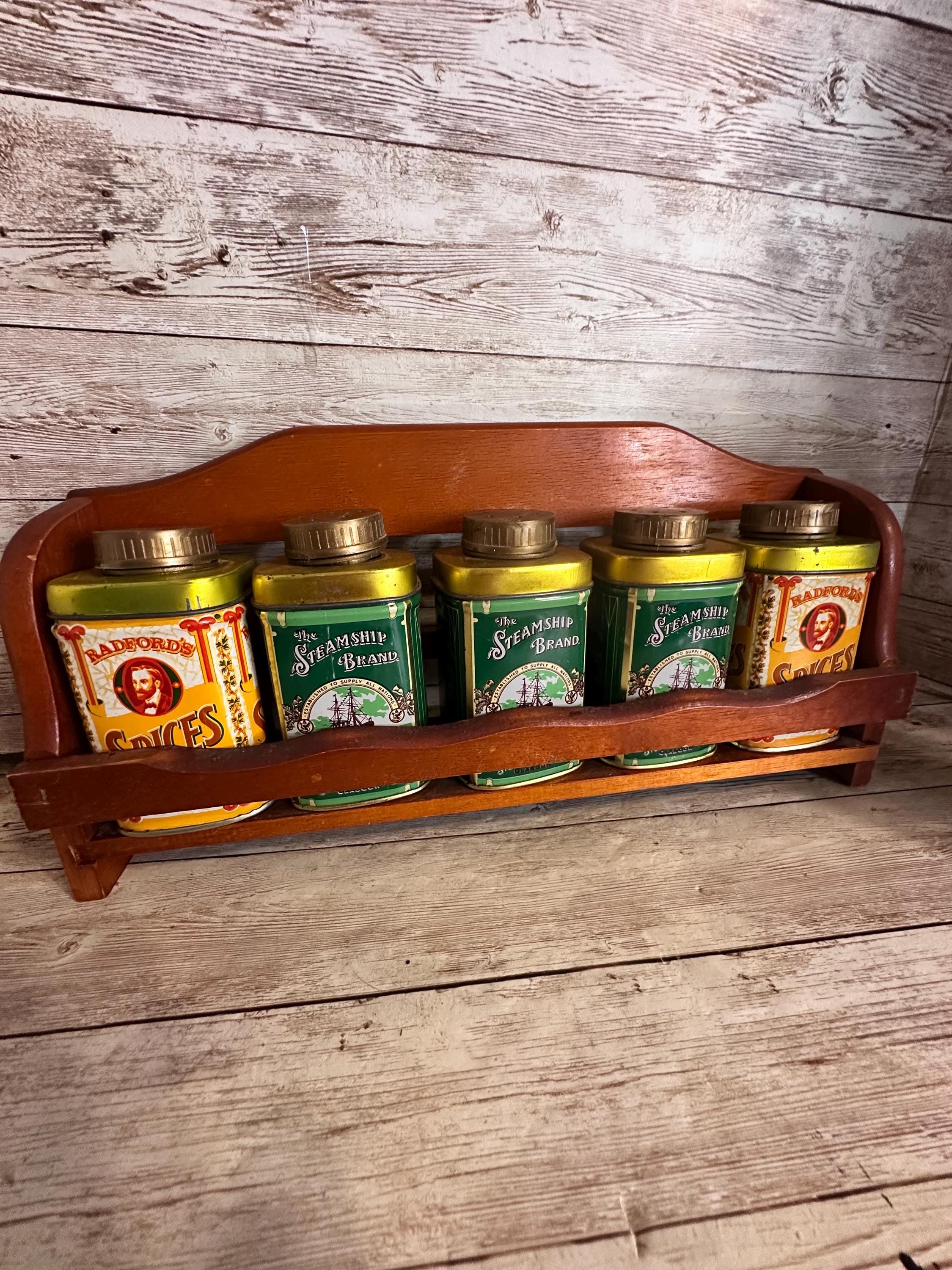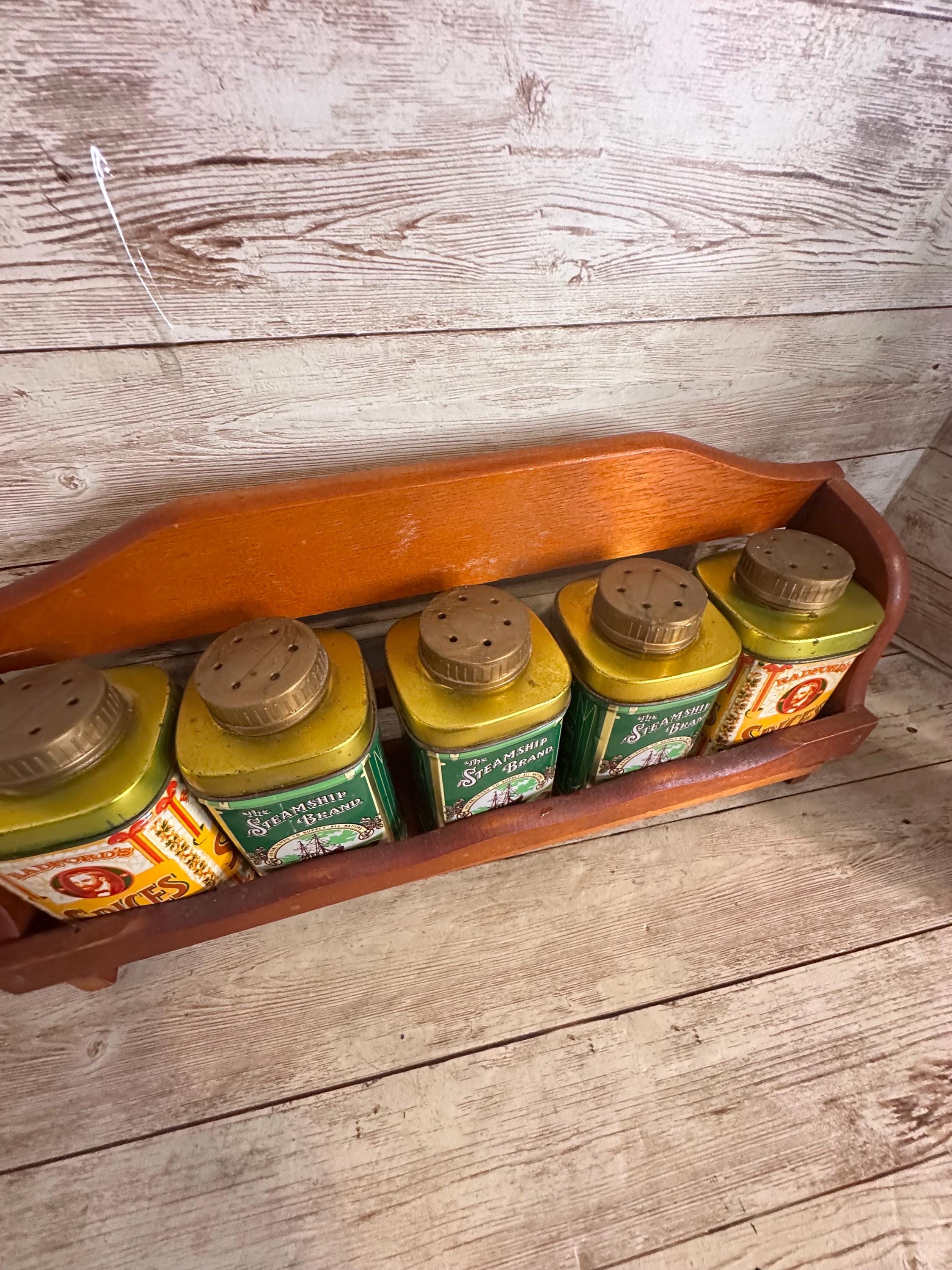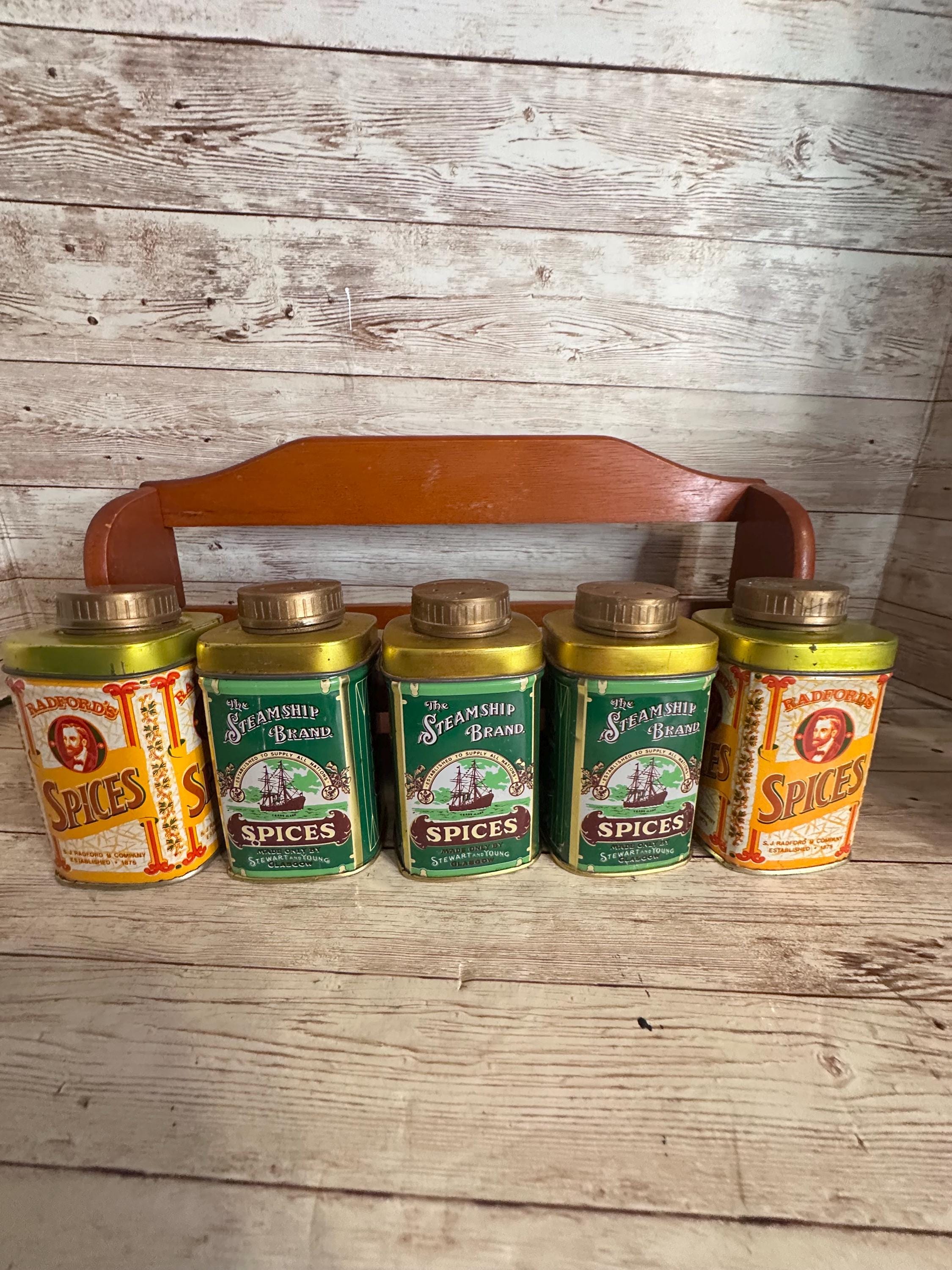 - Charming vintage lot of 5 Steamship Brand spice metal tins
