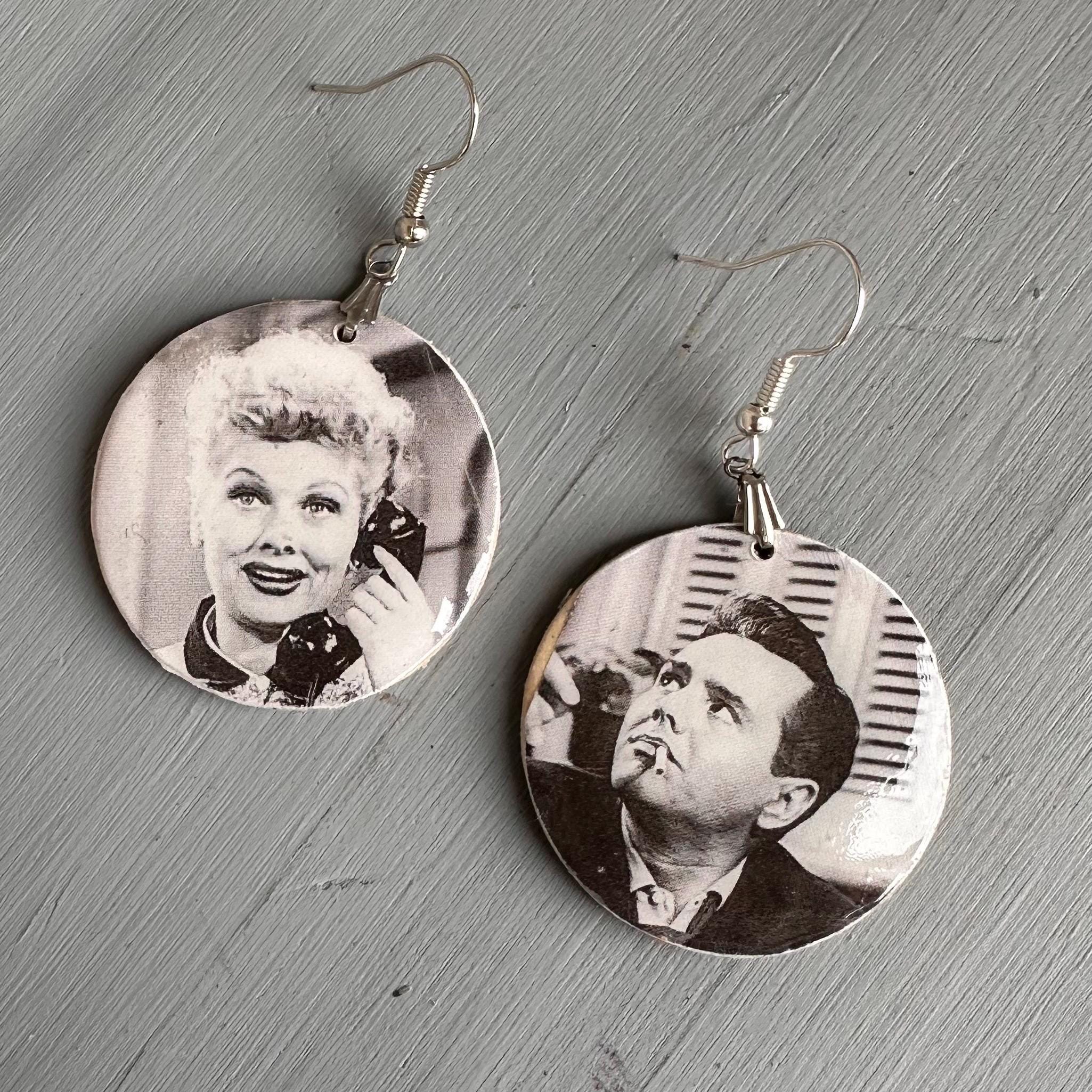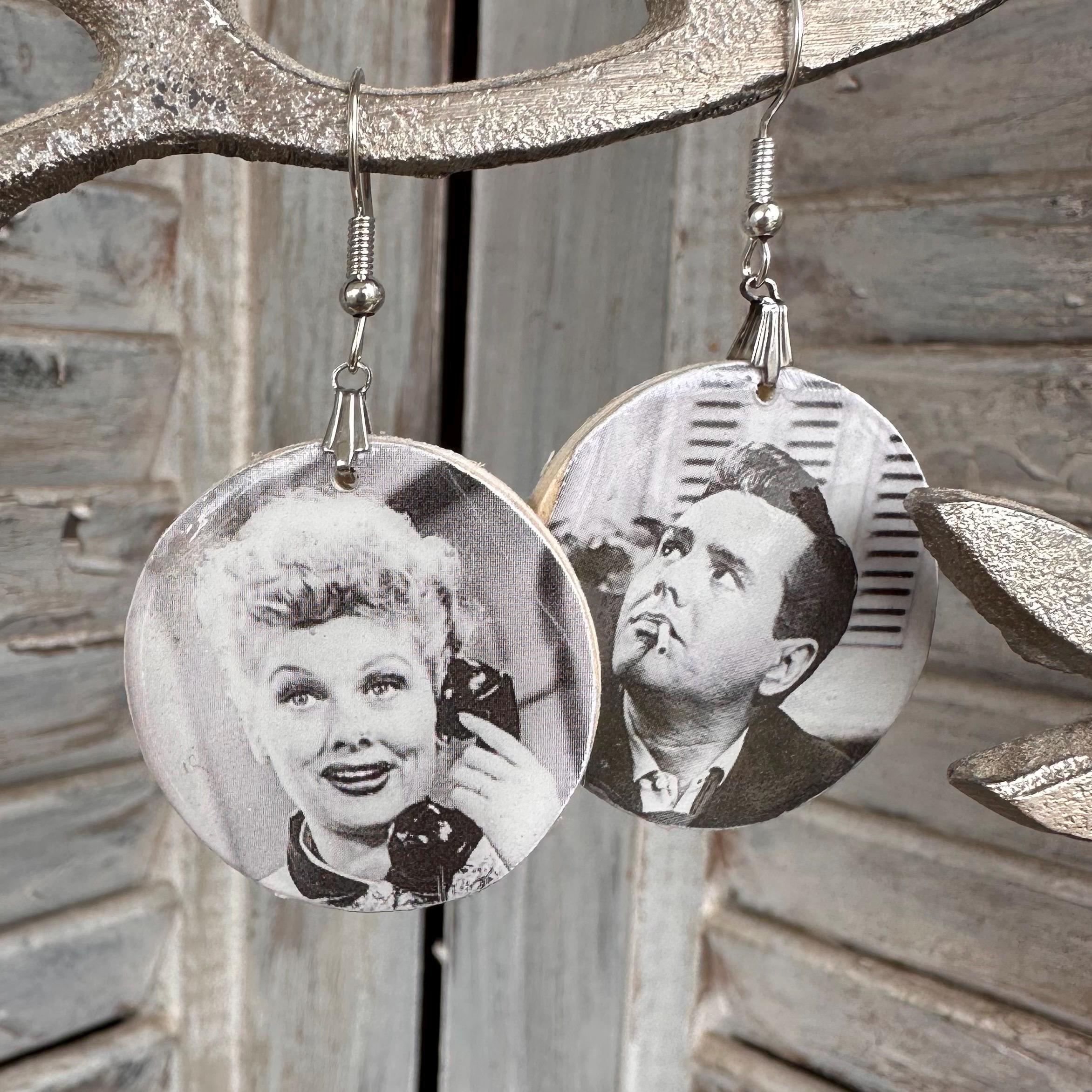 Elevate your accessory collection with these unique dangle earrings, crafted from vibrant images sourced from a vintage 2000 edition of the "Life in Pictures" Lucy book. Each round wood pendant is beautifully covered in high-quality resin for a glossy finish, and paired with durable stainless steel findings for comfort and style. Perfect for those who appreciate artistic flair and nostalgia, these earrings are a fantastic statement piece or a thoughtful gift for someone special.