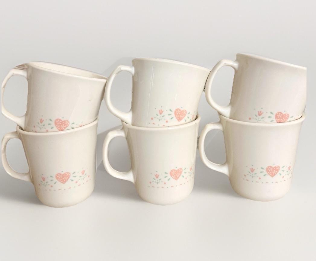 Elevate your morning ritual with the timeless elegance of the Corelle "Forever Yours" coffee mug set. Crafted in the 1990s and hailing from California, this six-piece collection combines functionality with a touch of romance, featuring a heartwarming pattern that's perfect for any retirement celebration or daily coffee aficionado.
