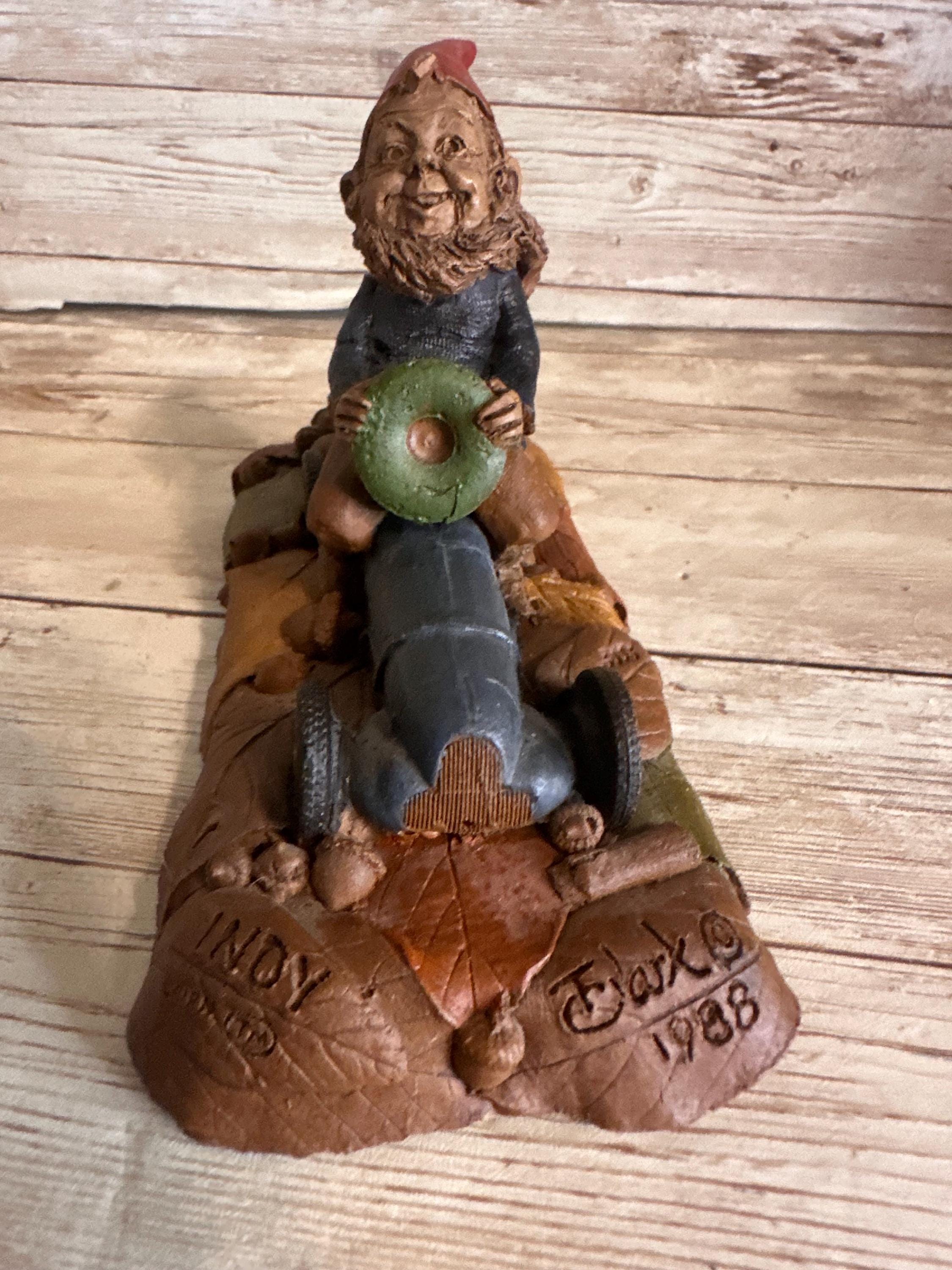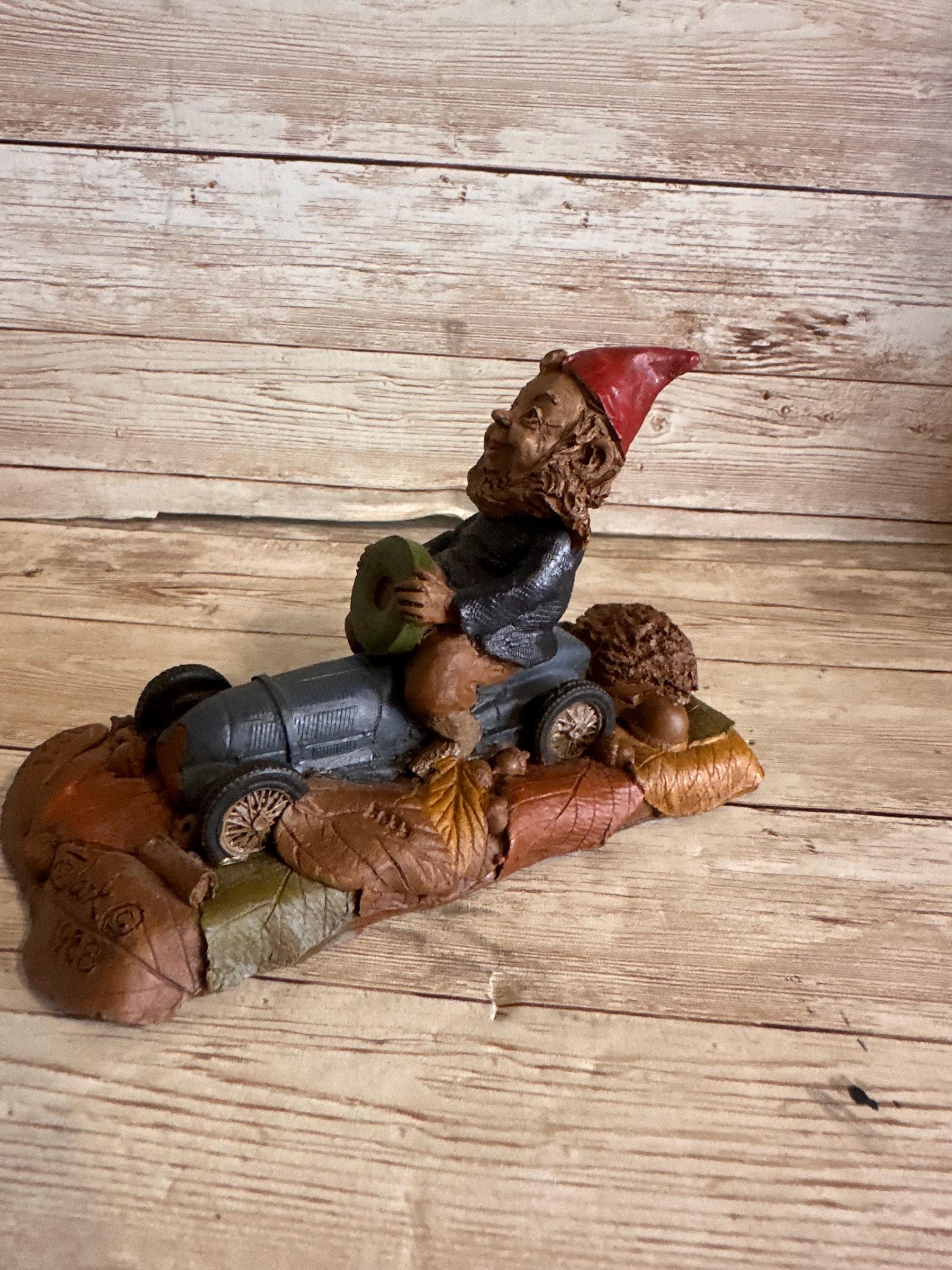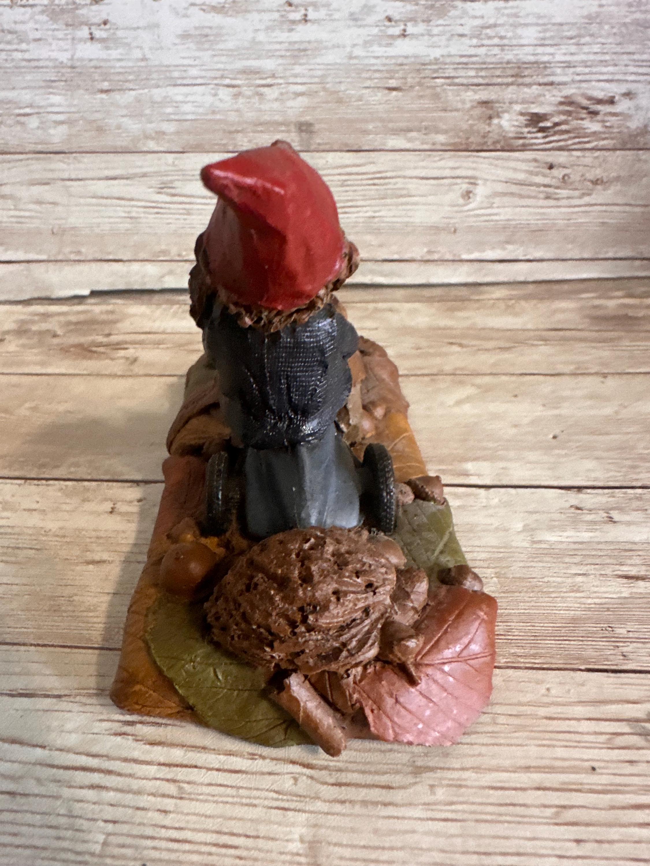 Discover a charming vintage Tom Clark gnome figurine, a delightful addition to any collection or rustic decor ensemble. Crafted from resin and paint, this small-sized gnome is intricately designed to bring a touch of whimsy to your home. The piece is signed and dated to 1983, highlighting its uniqueness and authenticity.