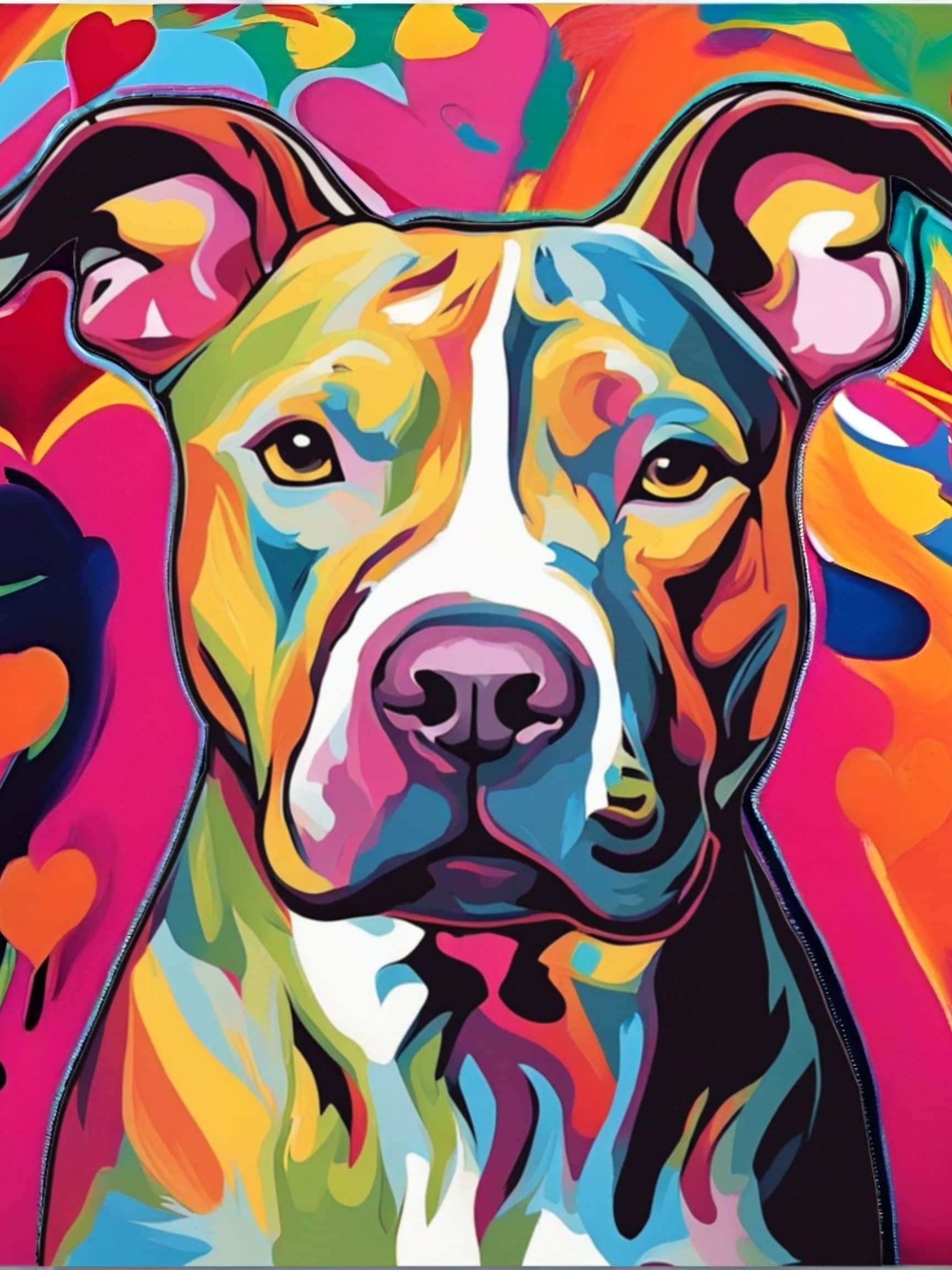 In this striking decoupage piece, a vibrant pitbull bursts to life in a riot of colors and dynamic graffiti-style patterns. The energetic composition captures the essence of urban artistry, with the canine subject exuding charisma and personality. This fusion of pop art and graffiti elements creates a visually stimulating and captivating portrayal of the pitbull, making it a true standout piece that embodies the spirit of creativity and individuality.
