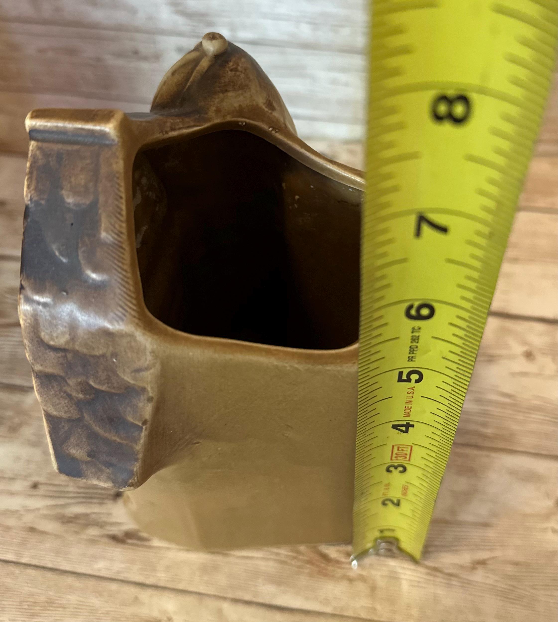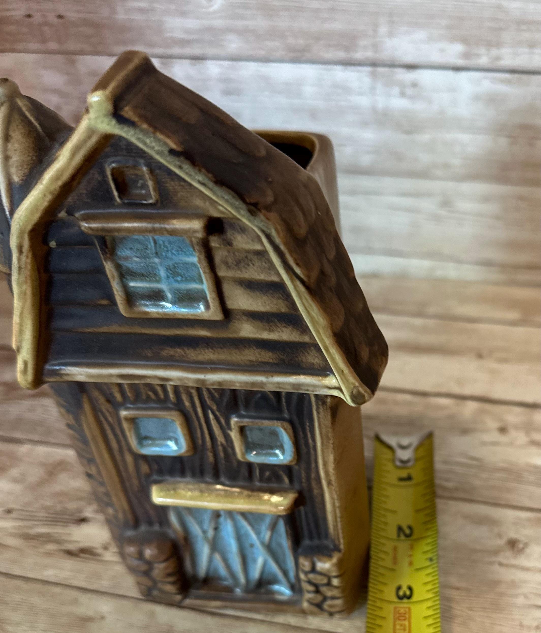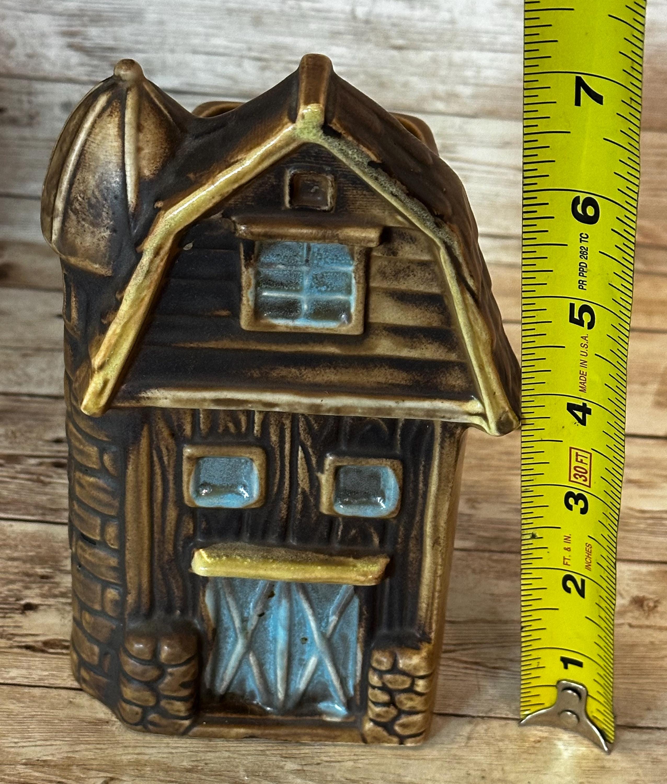 This Vintage Barn Wall Pocket by Lefton Ceramic features a rustic brown color with a smooth finish, perfect for adding a touch of country charm to any wall. Measuring 6.5x4x3 inches, this medium-sized wall pocket is made of ceramic and showcases a barn pattern, making it a unique and collectible decorative piece. Originating from Japan in the 1960s, this vintage piece is suitable for adult's bedroom or living space, adding a nostalgic touch to the space with its country style and theme.