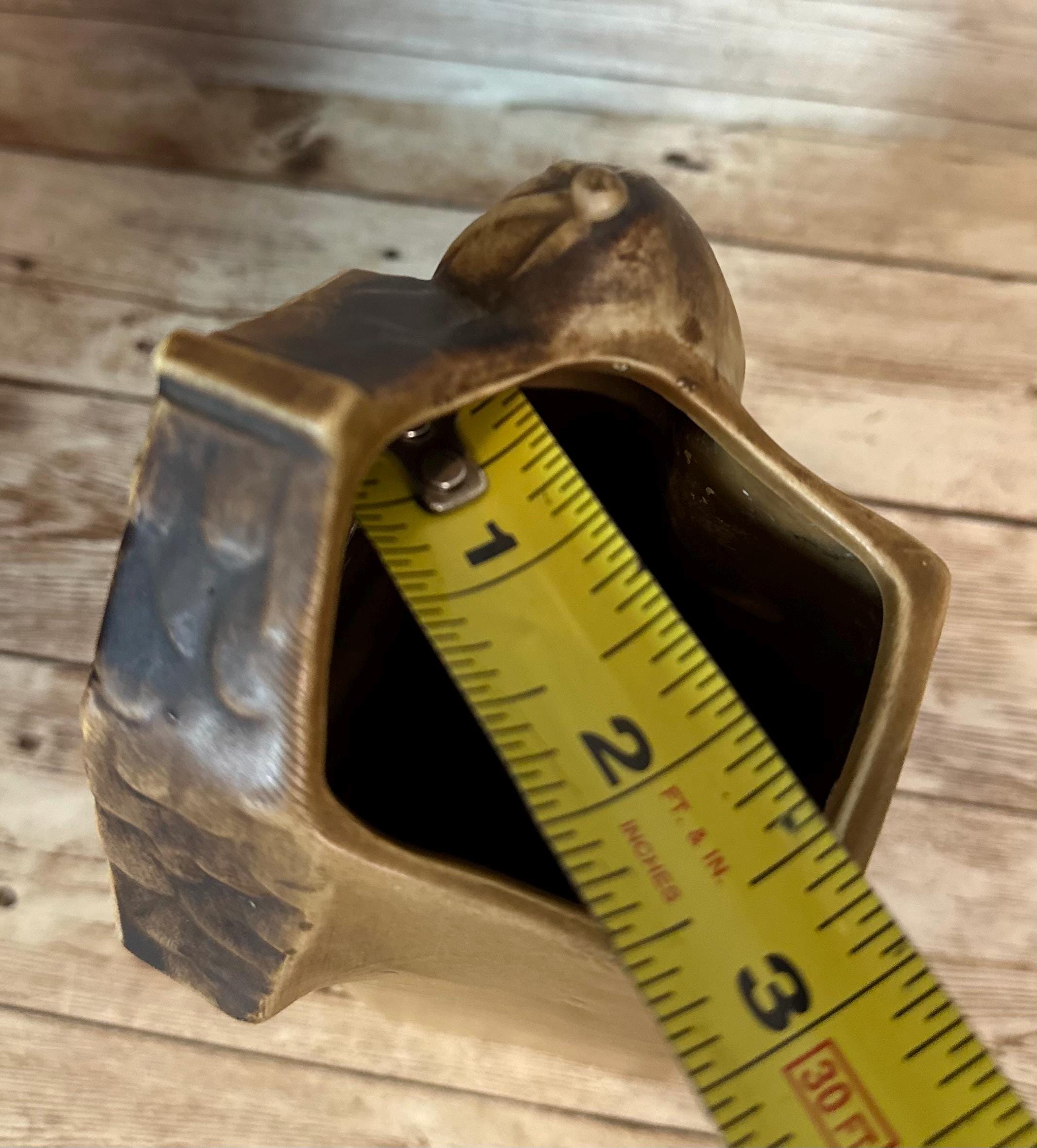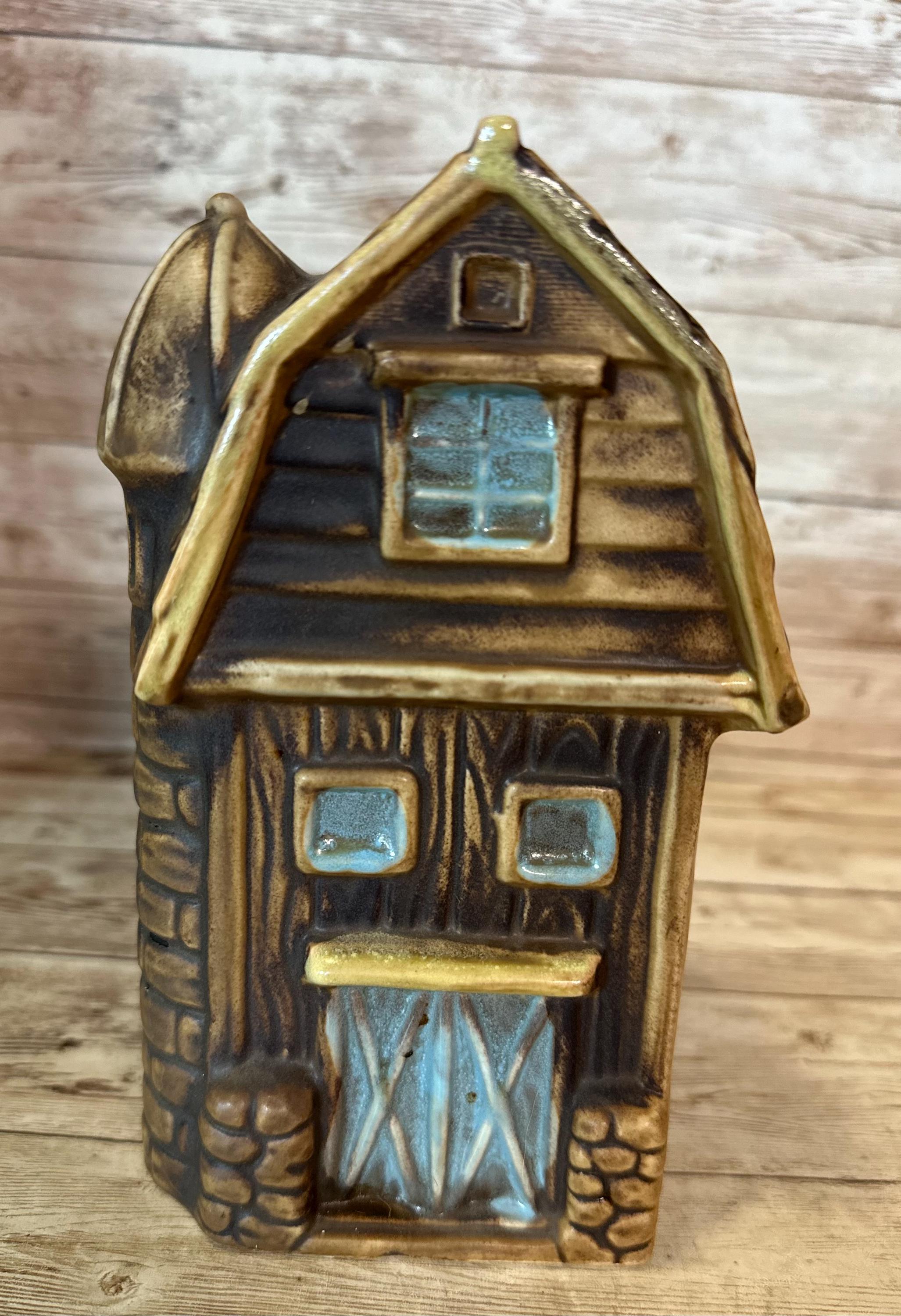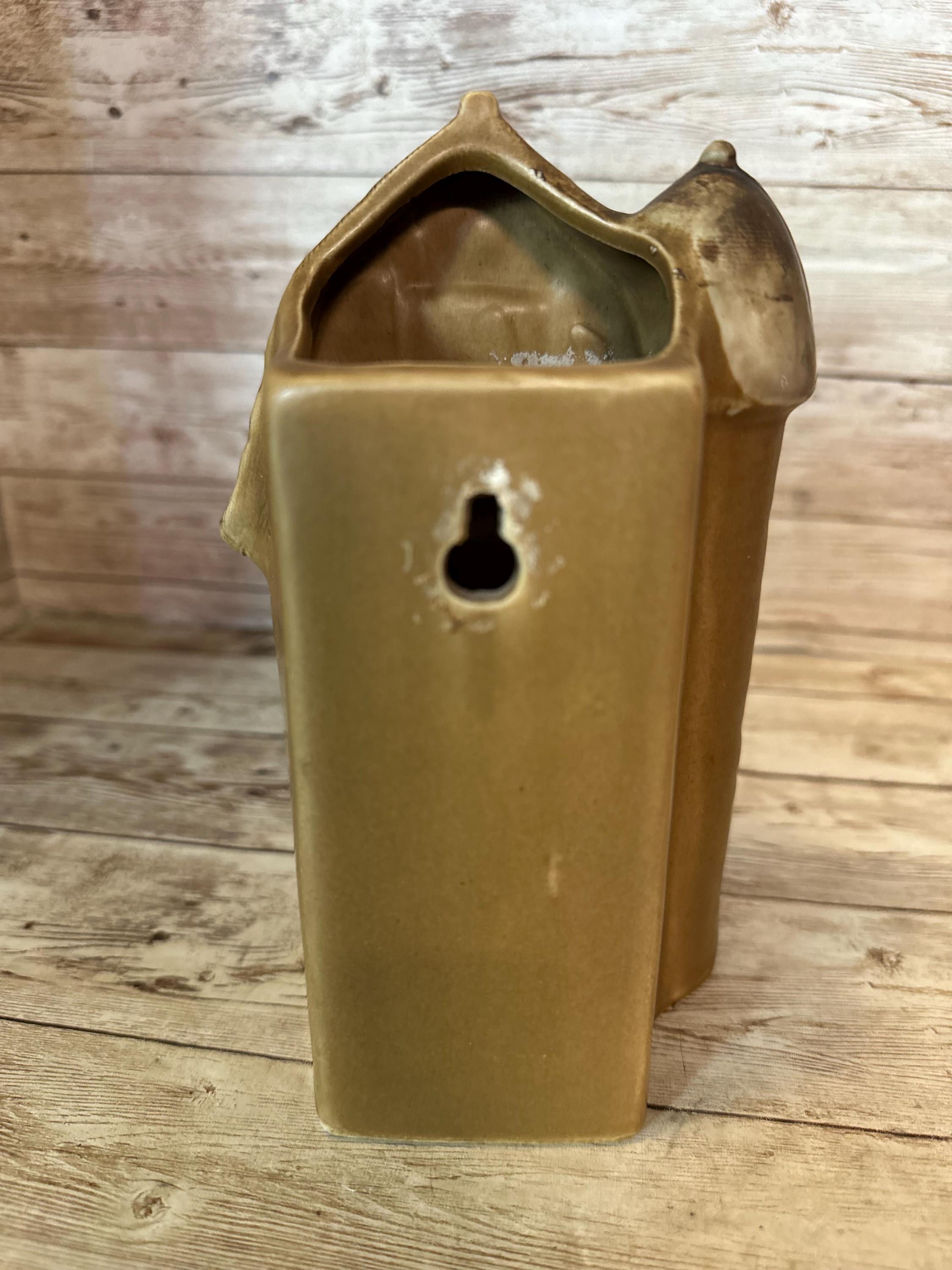 This Vintage Barn Wall Pocket by Lefton Ceramic features a rustic brown color with a smooth finish, perfect for adding a touch of country charm to any wall. Measuring 6.5x4x3 inches, this medium-sized wall pocket is made of ceramic and showcases a barn pattern, making it a unique and collectible decorative piece. Originating from Japan in the 1960s, this vintage piece is suitable for adult's bedroom or living space, adding a nostalgic touch to the space with its country style and theme.