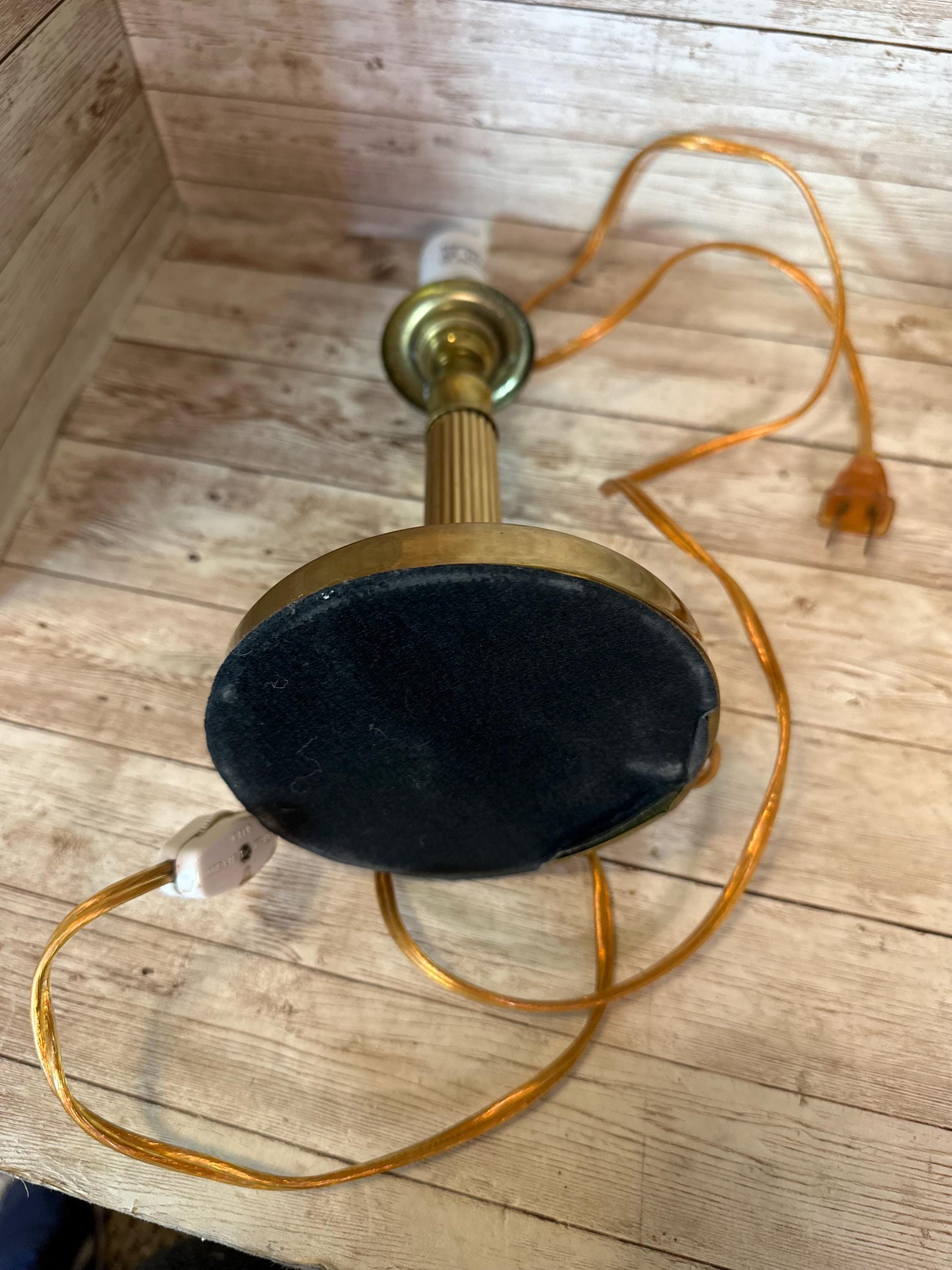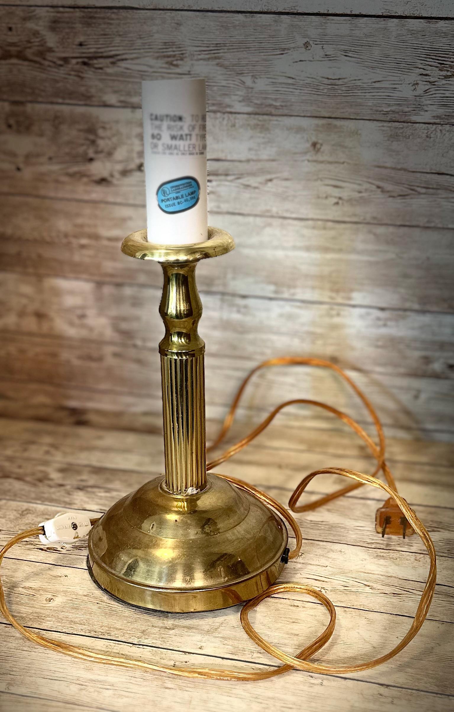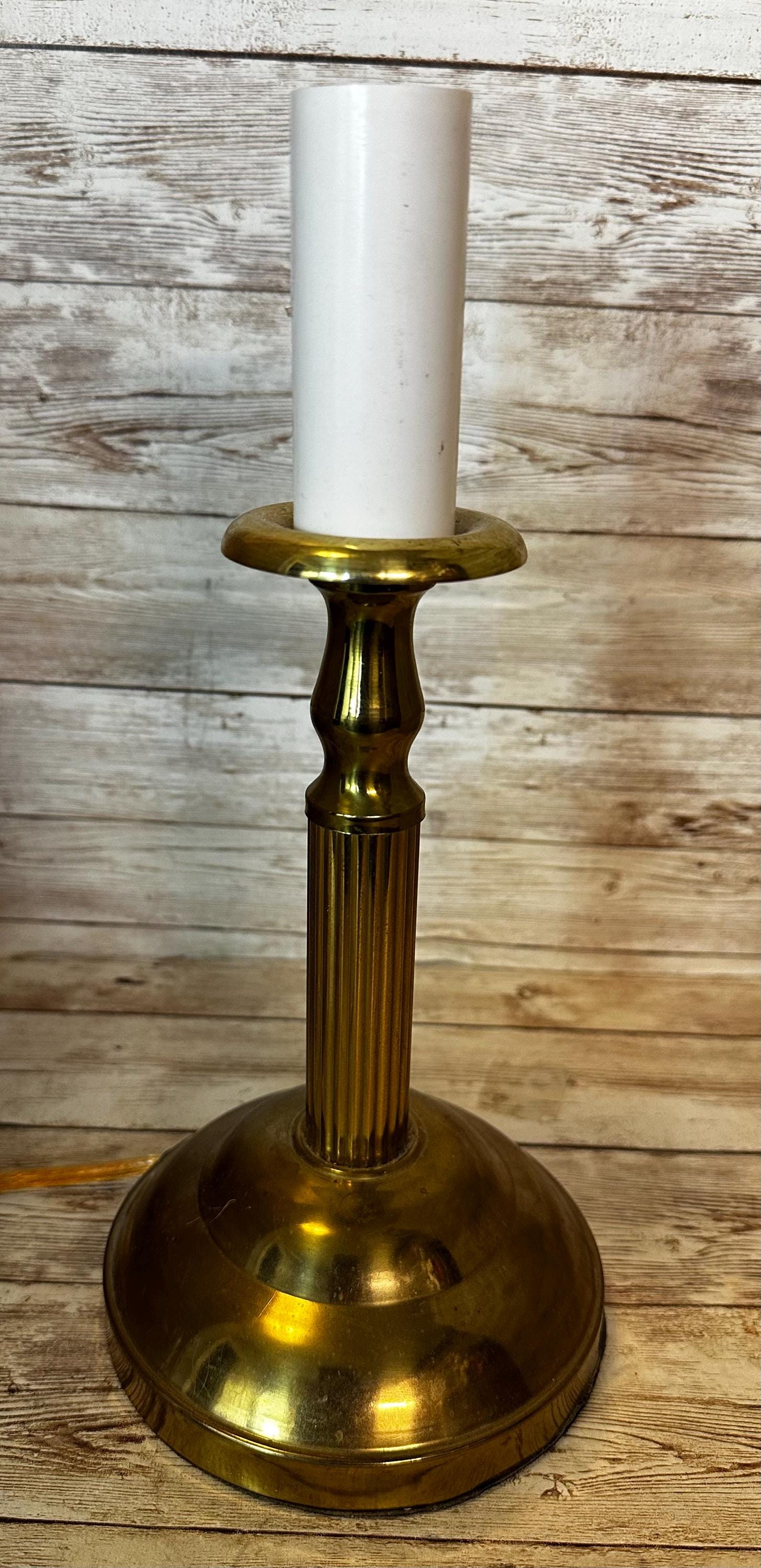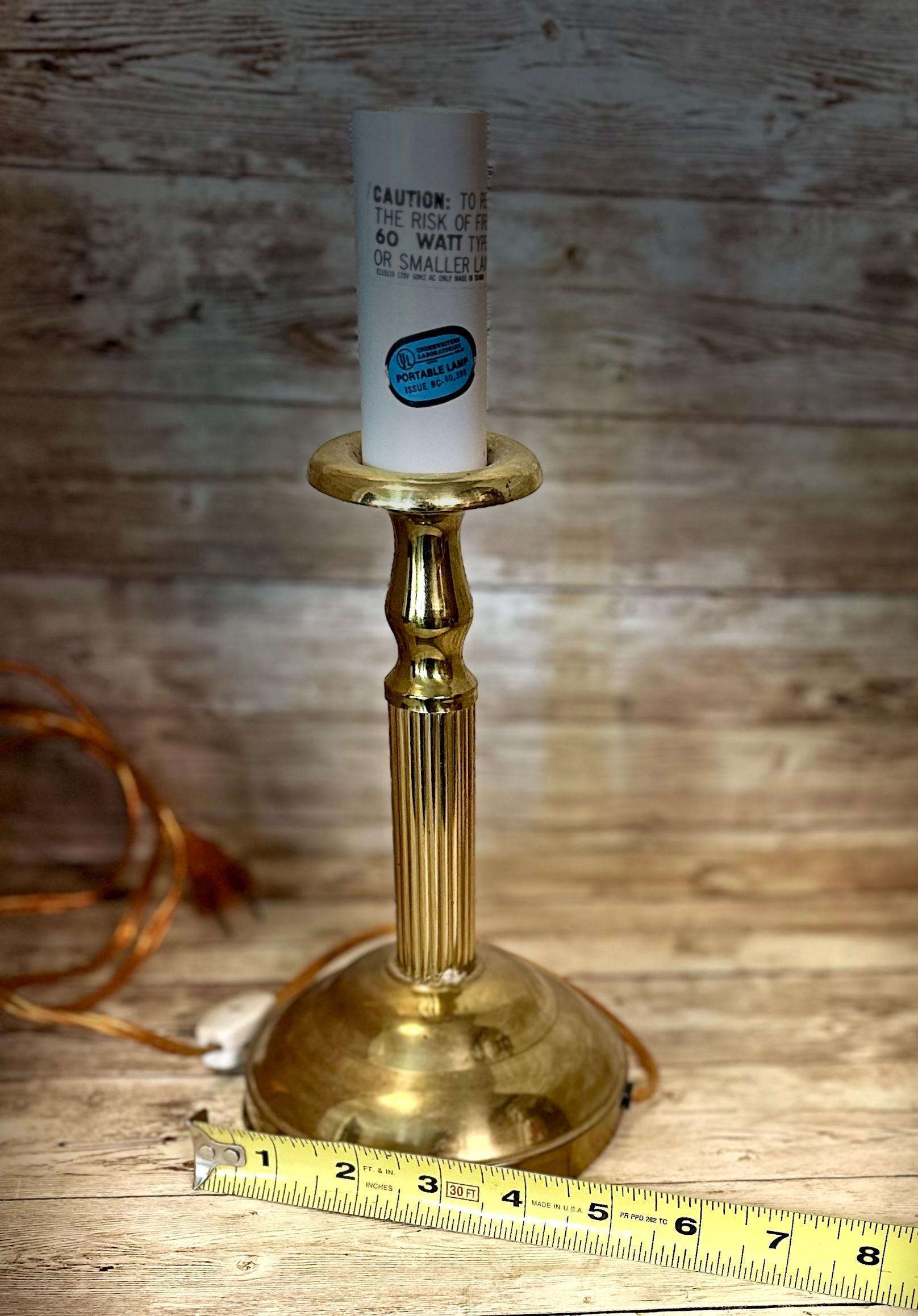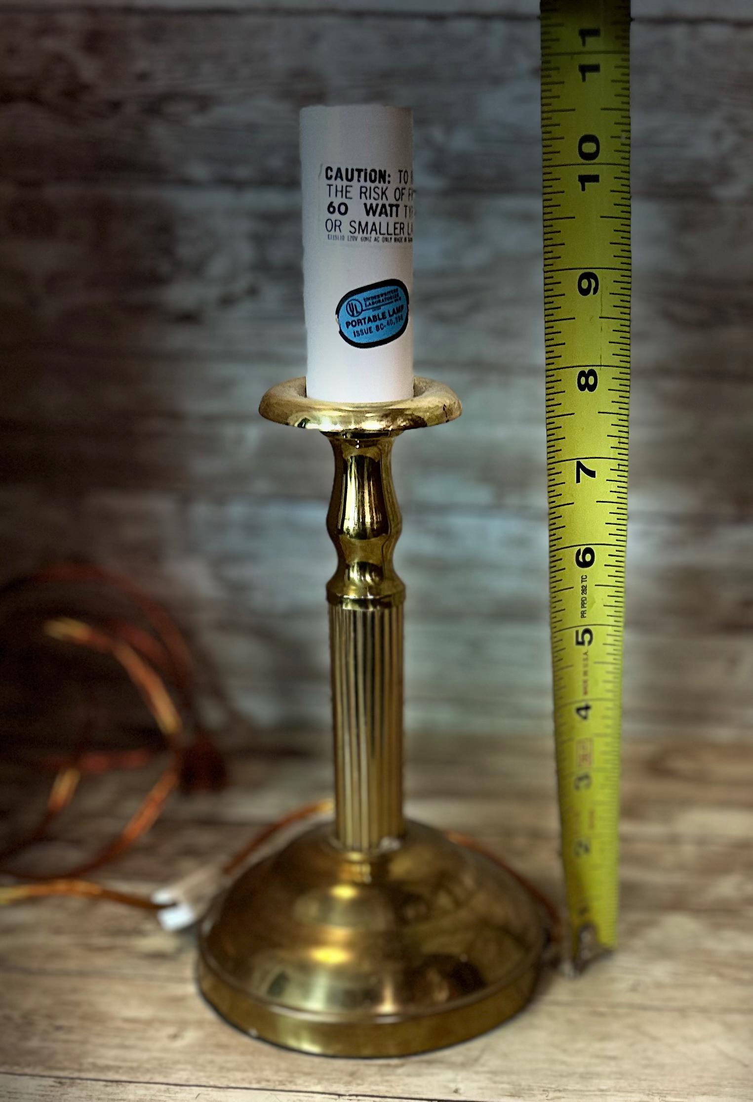 This vintage tall brass table lamp, measuring 10 1/2 inches in height, exudes a classic design perfect for all occasions. The elegant gold color and mid 20th-century era make it a timeless piece for any room in your home. With its medium size and sturdy brass material, this original candlestick buffet lamp adds a touch of vintage charm to your decor. **No Return Policy**