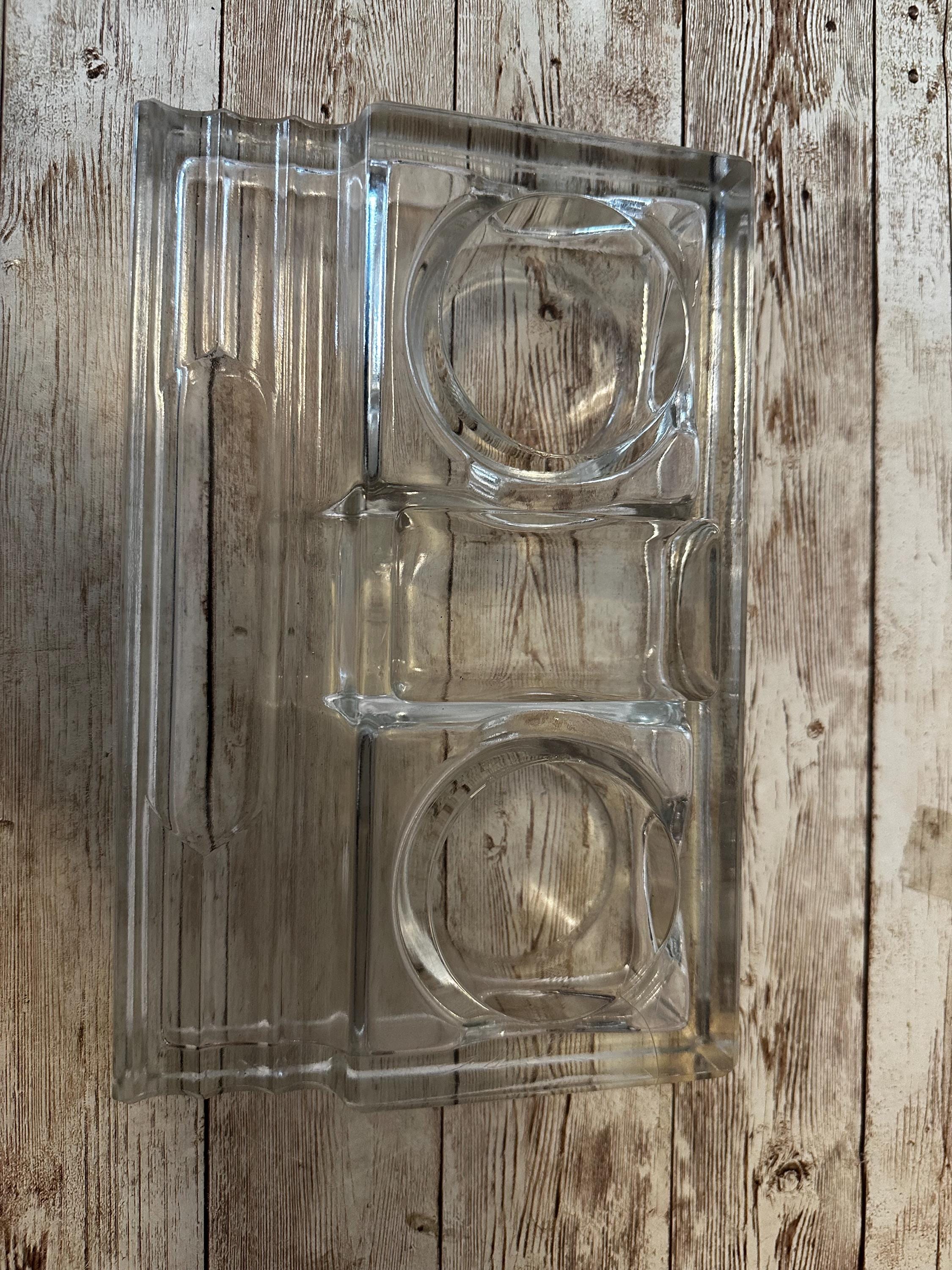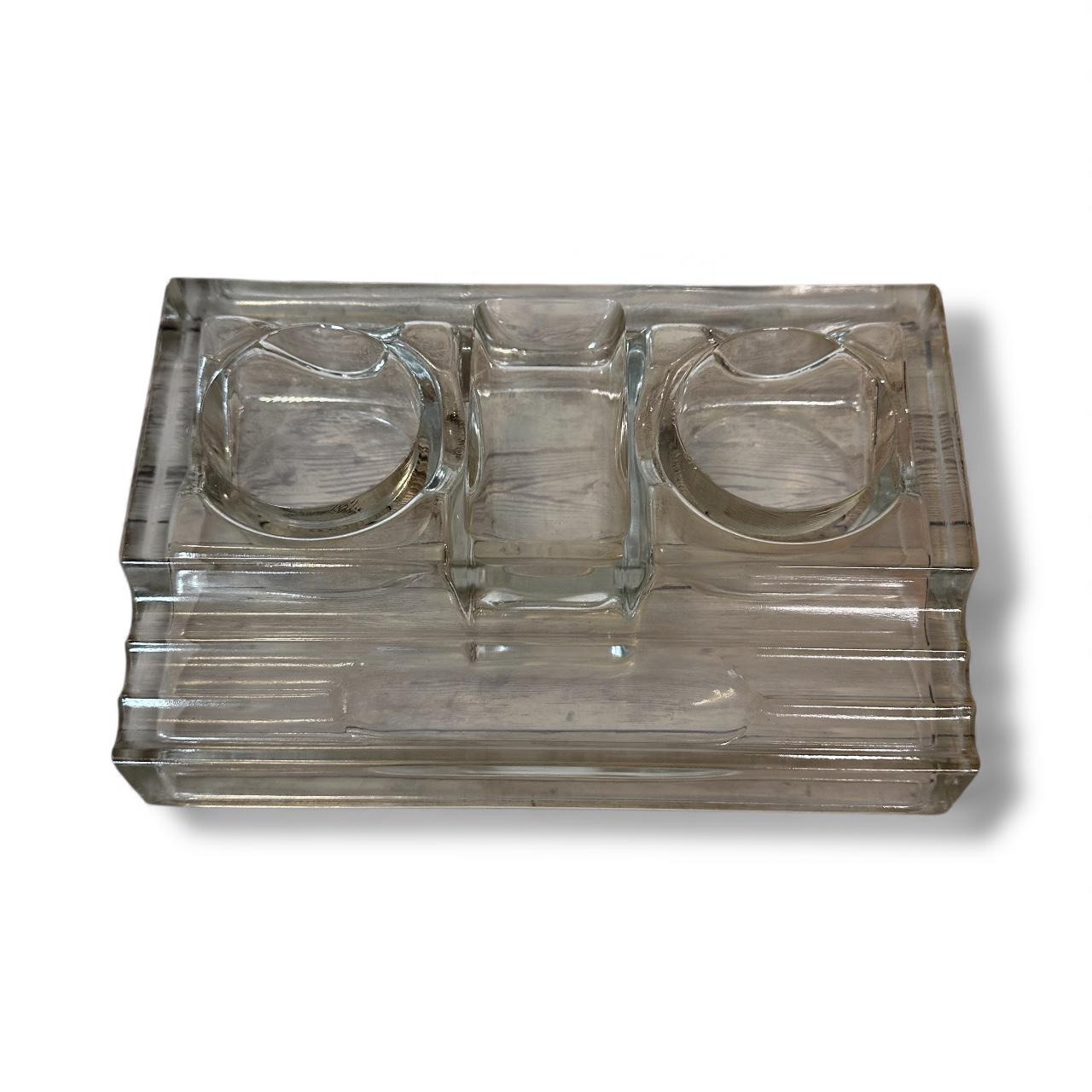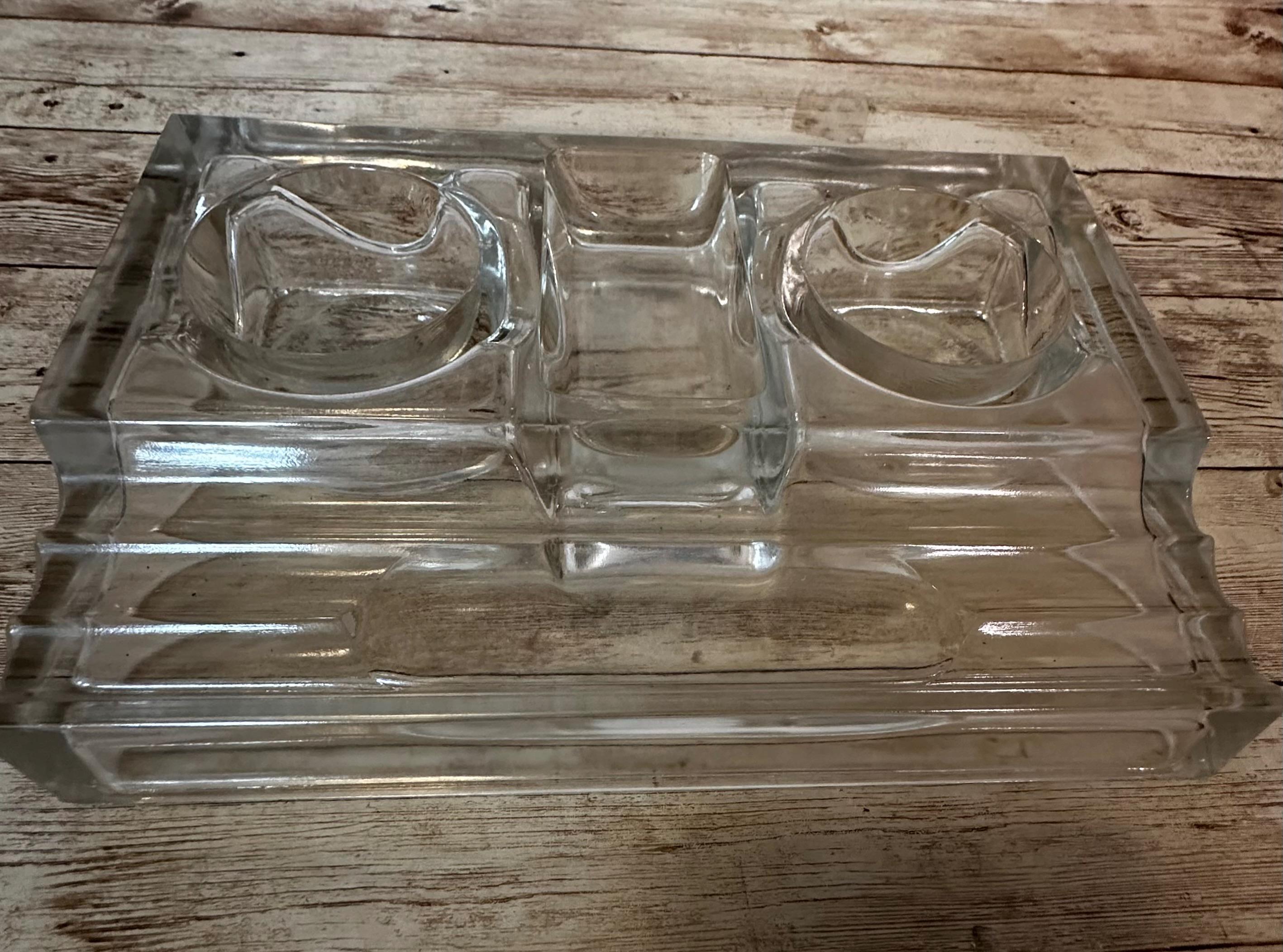 The Art Deco 1920's Sengbusch #320 Clear Glass Dual Inkwell Pen Holder is a vintage collectible piece originating from the United States. Made of heavy glass, this unique item features two inkwells in clear glass, adding a touch of elegance and nostalgia to any pen and writing instrument collection. With its timeless design and craftsmanship, this piece is sure to be a standout display item for any collector interested in vintage inkwells and pen holders. **No Return Policy**