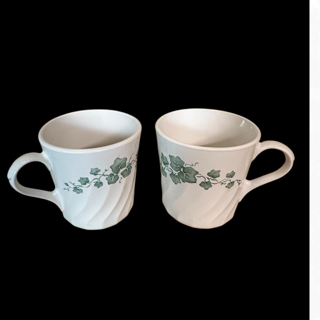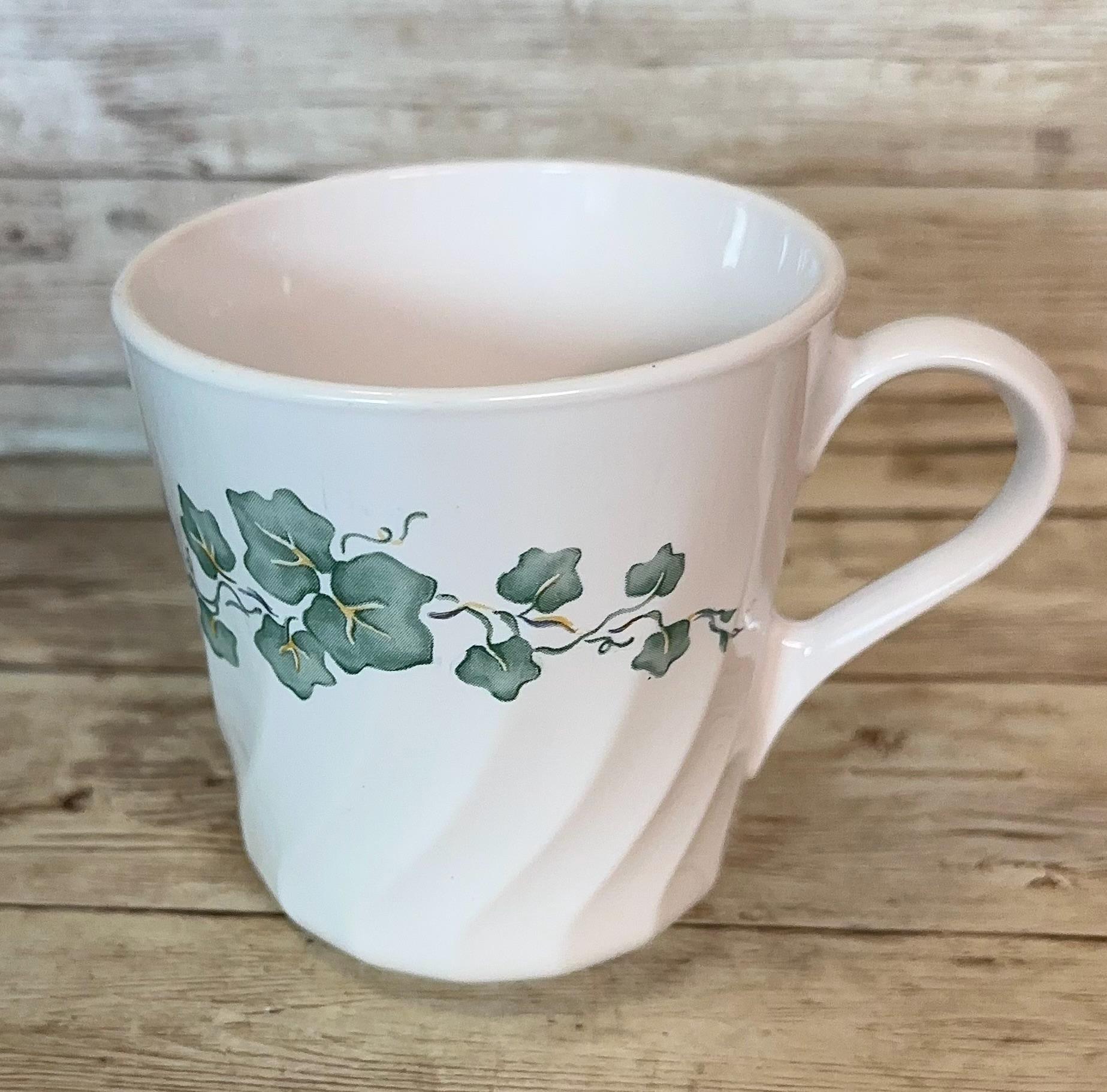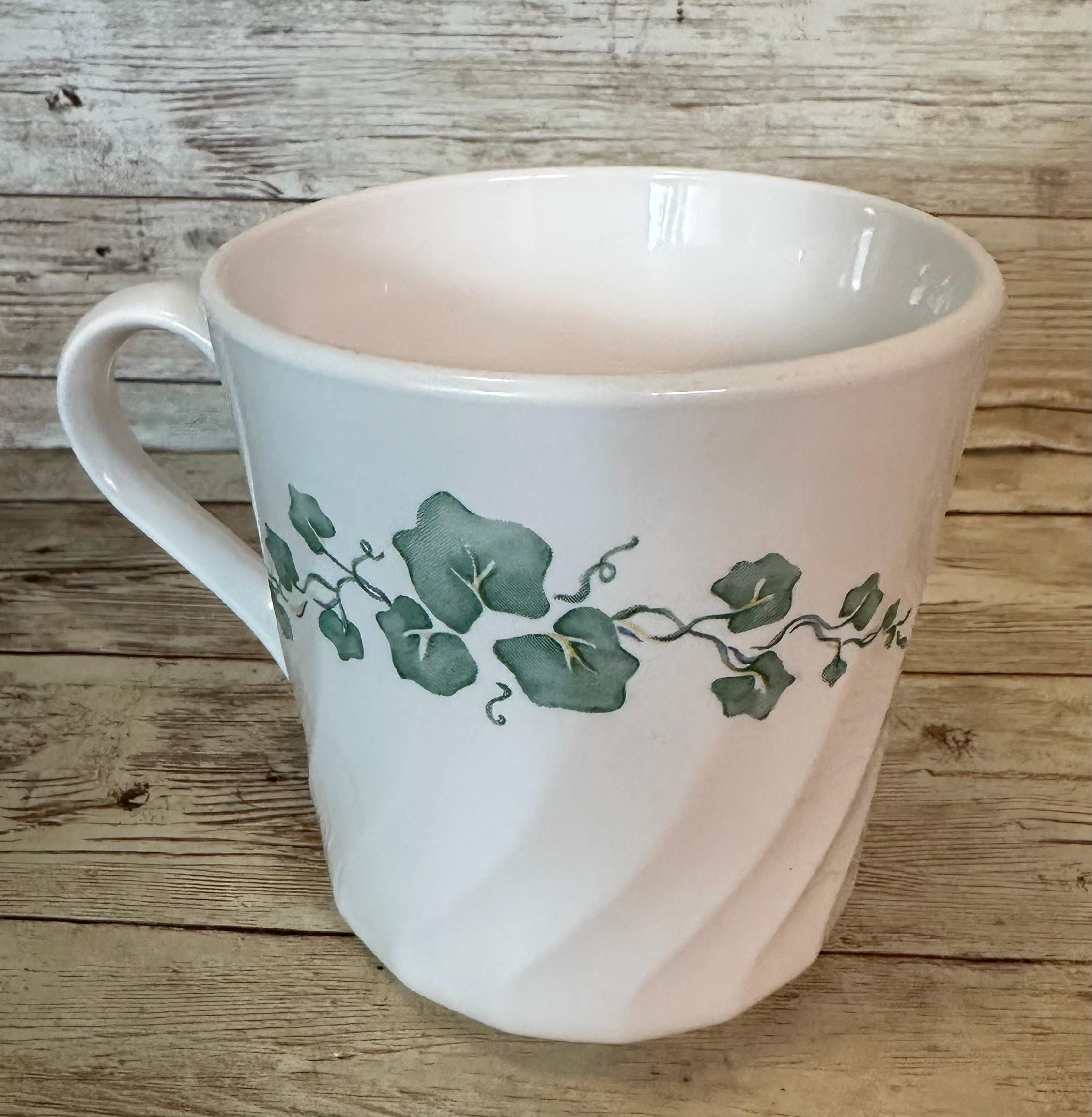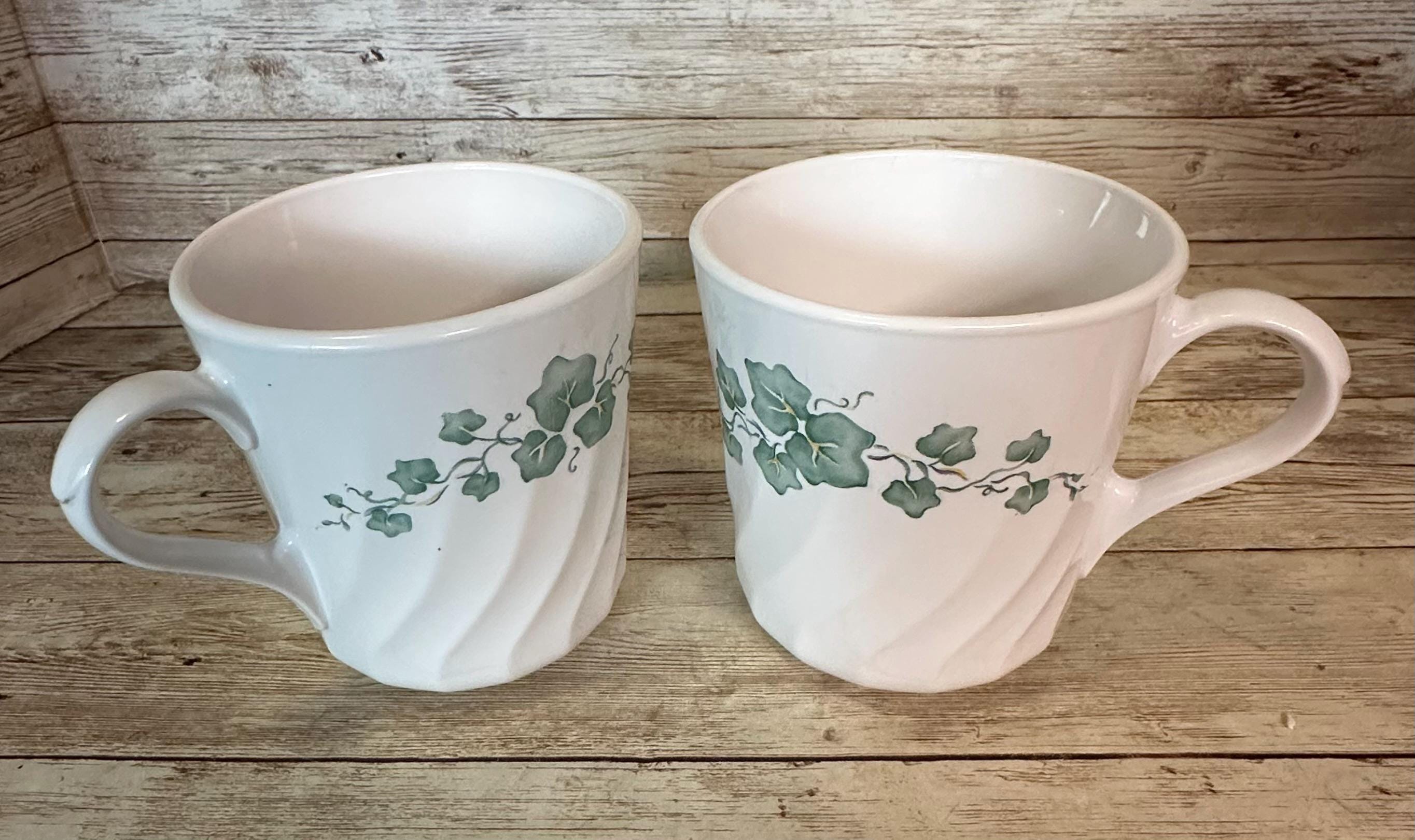 The Corelle Coordinates Callaway Ivy Coffee Mugs are a set of 2 green ivy-patterned coffee cups made of glass. These original coffee mugs by Corelle are perfect for enjoying your favorite hot beverages in style. The elegant design and high-quality material make these mugs durable and visually appealing for any kitchen or dining area.