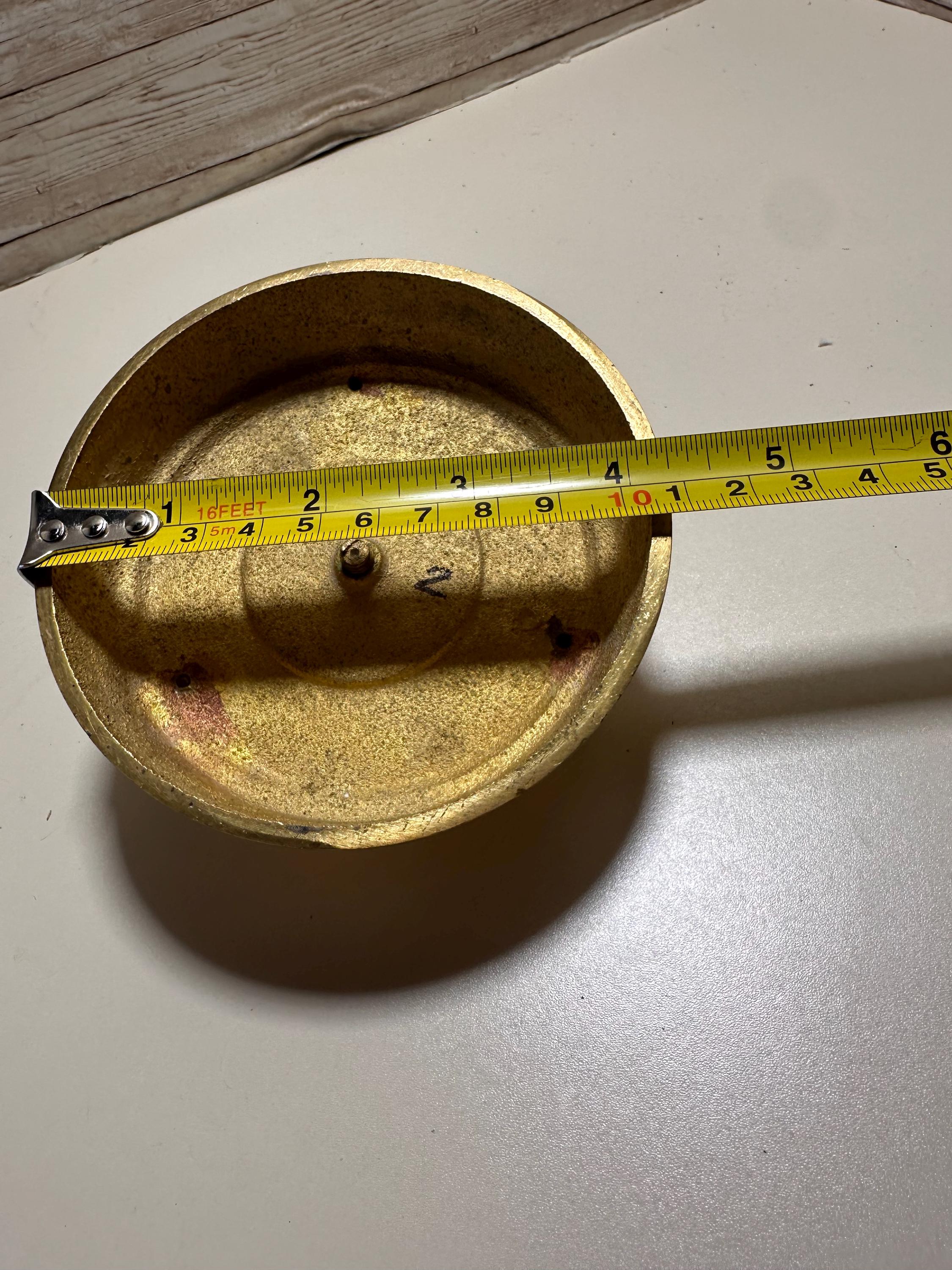 The PARTYLITE Gold Tone Tapered Candle Holder is a small, round brass candle holder with a traditional design suitable for all occasions. With a shiny finish and a 2" height and 4" base, this vintage collectible from the 1990s is perfect for holding mini candles. Its elegant gold color adds a touch of luxury to any decor, making it a timeless and stylish addition to any home. **No Return Policy**