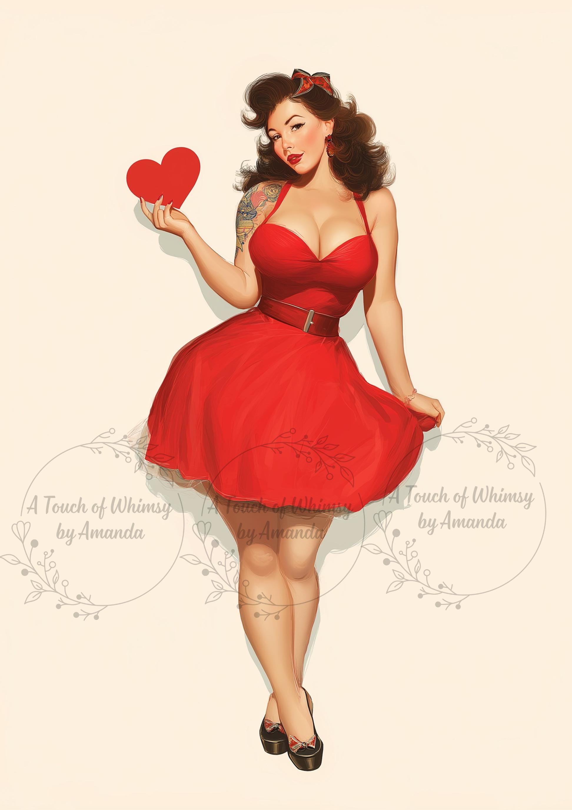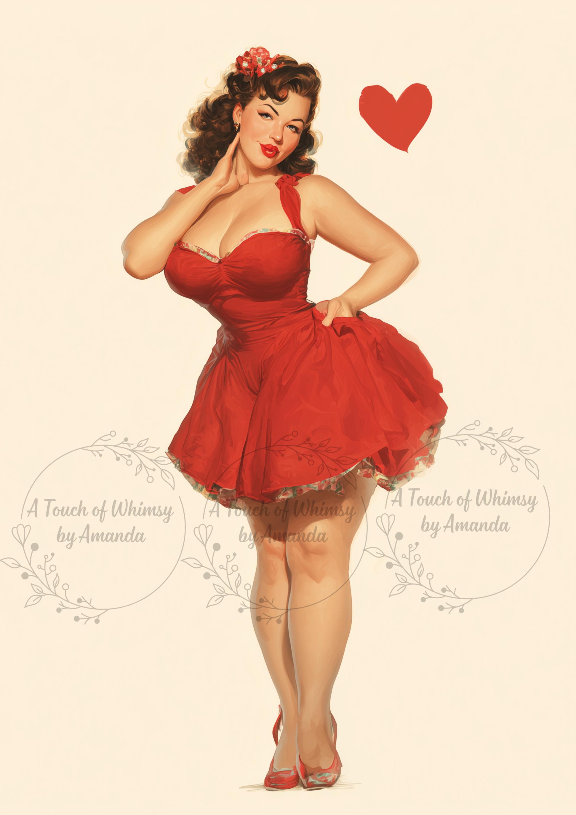 A sassy pin-up girl with a bold red vintage dress. Styled with retro glamour and perfect for valentines day this design is perfect for adding a feminine yet rebellious flair to decoupage, junk journals, and mixed media projects