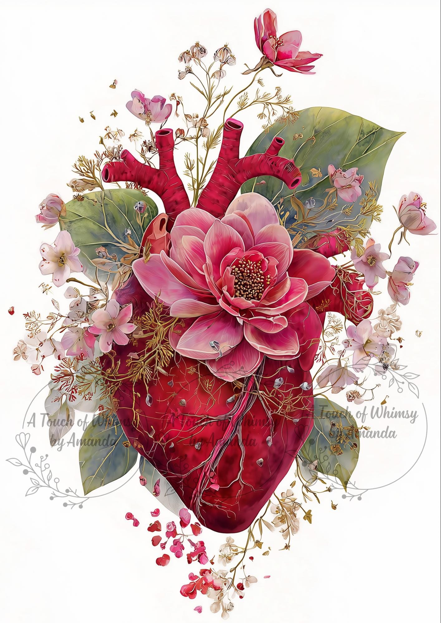 A striking Valentine’s Day decoupage paper featuring an anatomical heart bursting with vibrant florals, lush leaves, and rich roses. This bold mix of science and romance adds an edgy, artistic twist to cards, journals, mixed media, and heartfelt handmade gifts.