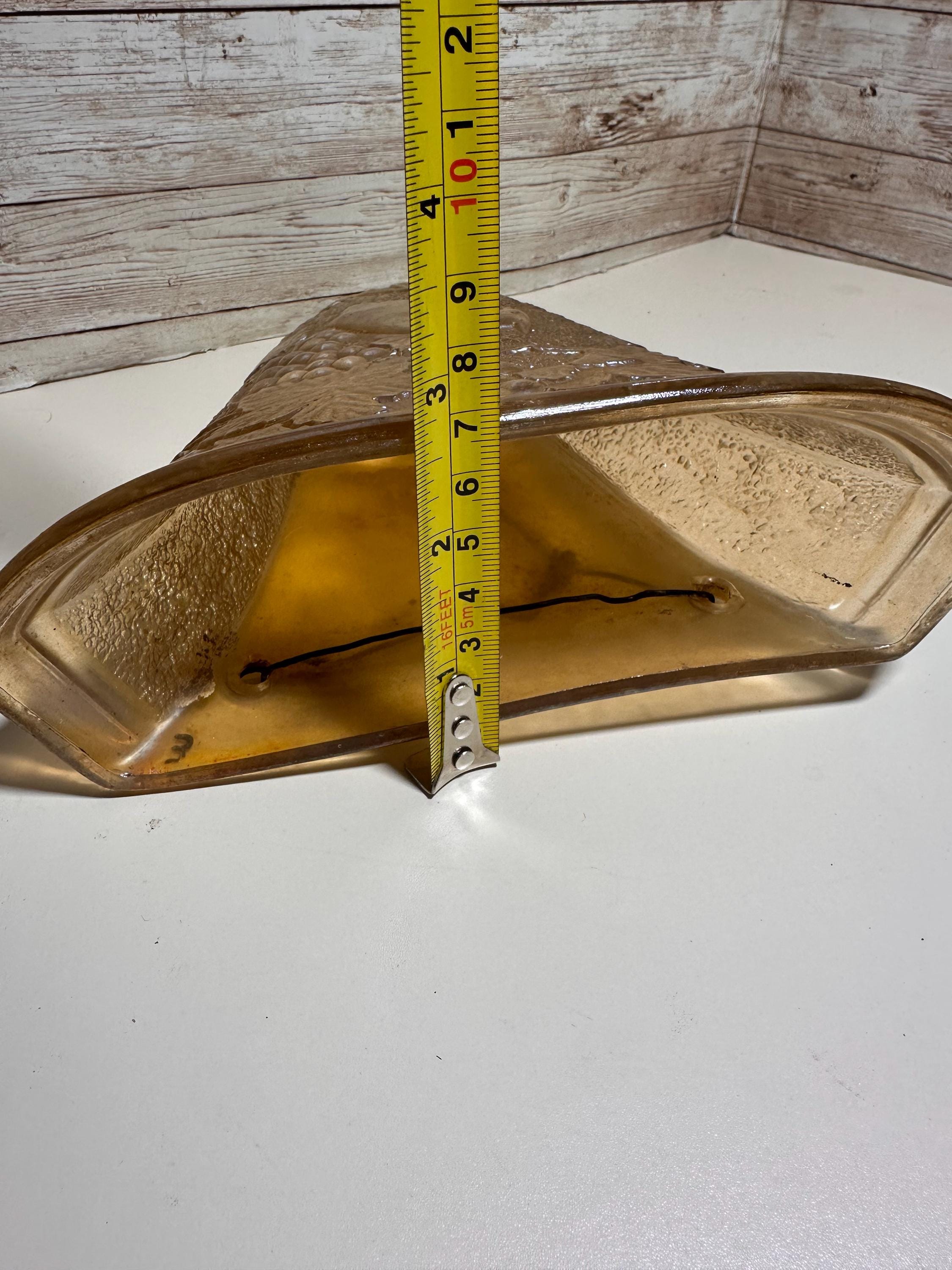 The Dugan Diamond Carnival Glass Marigold Cockatoo Bird & Grapes Wall Pocket Vase is a vintage piece of glassware from the United States, featuring a unique design of grapes and birds. This original wall pocket vase, measuring 7.5" in height and 2.5" in width at the top, is made of marigold carnival glass with a cocktail bird theme. Signed by Dugan & Diamond, this decorative piece adds a touch of elegance to any space with its intricate pattern and vibrant colors. **No Return Policy**