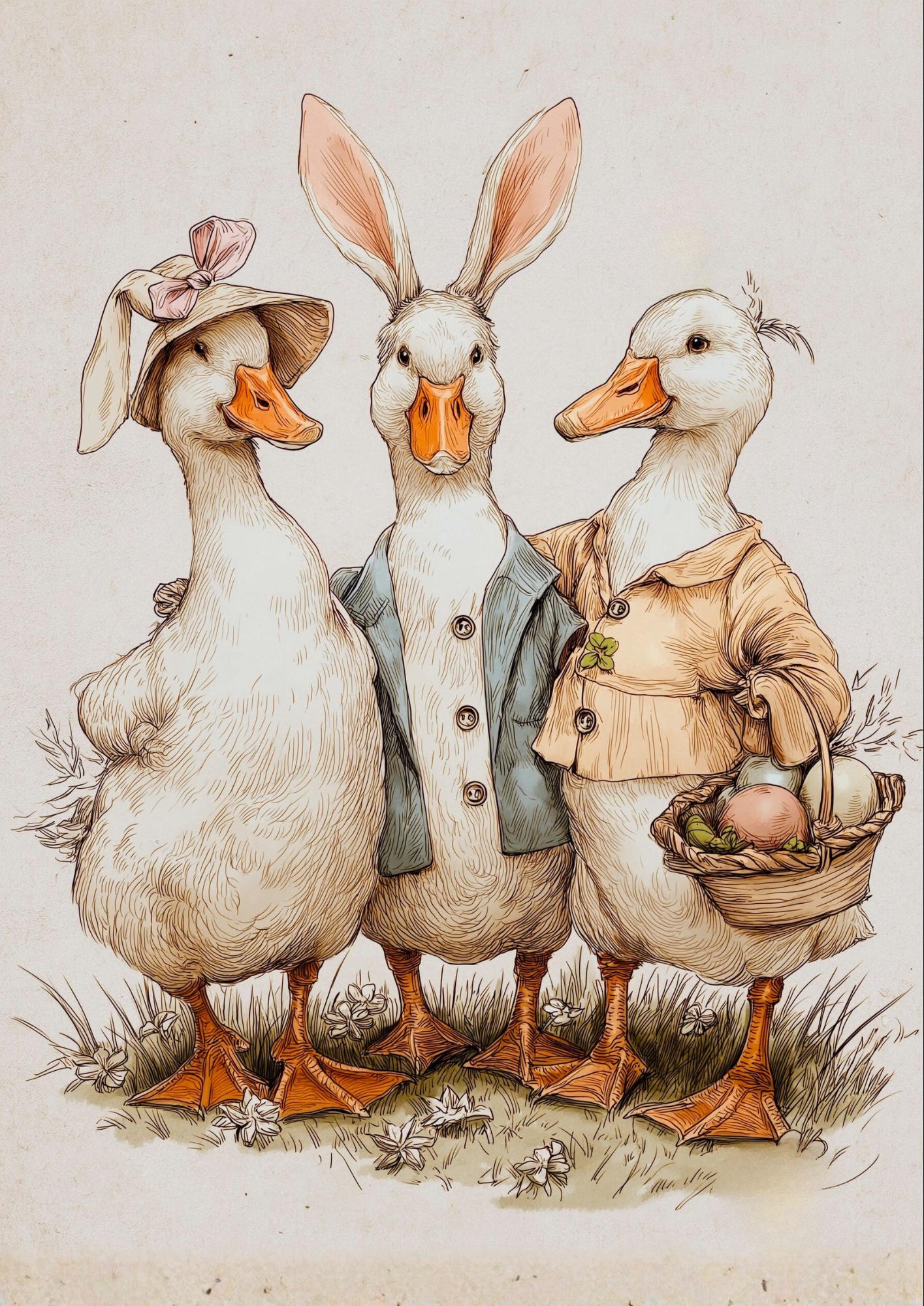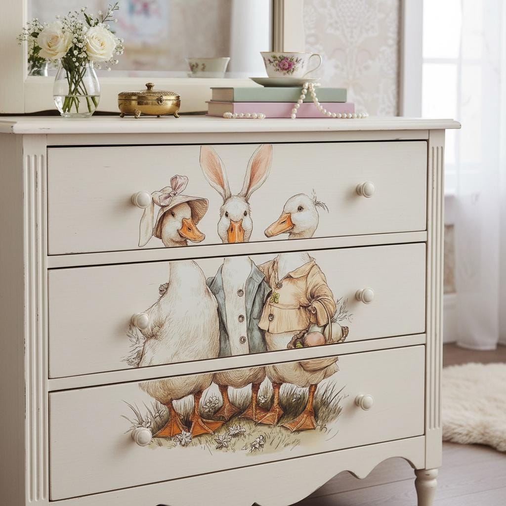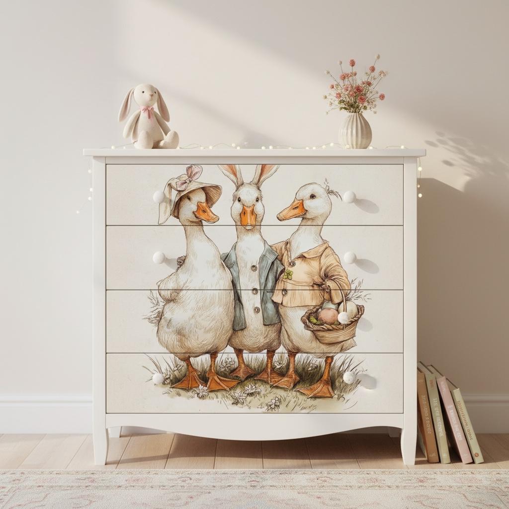 Nursery Easter Duck Decoupage Paper - Whimsical Ducks in Spring Bonnets, A4 Rice or Tissue, Nursery Ducks, DIY Easter Gift