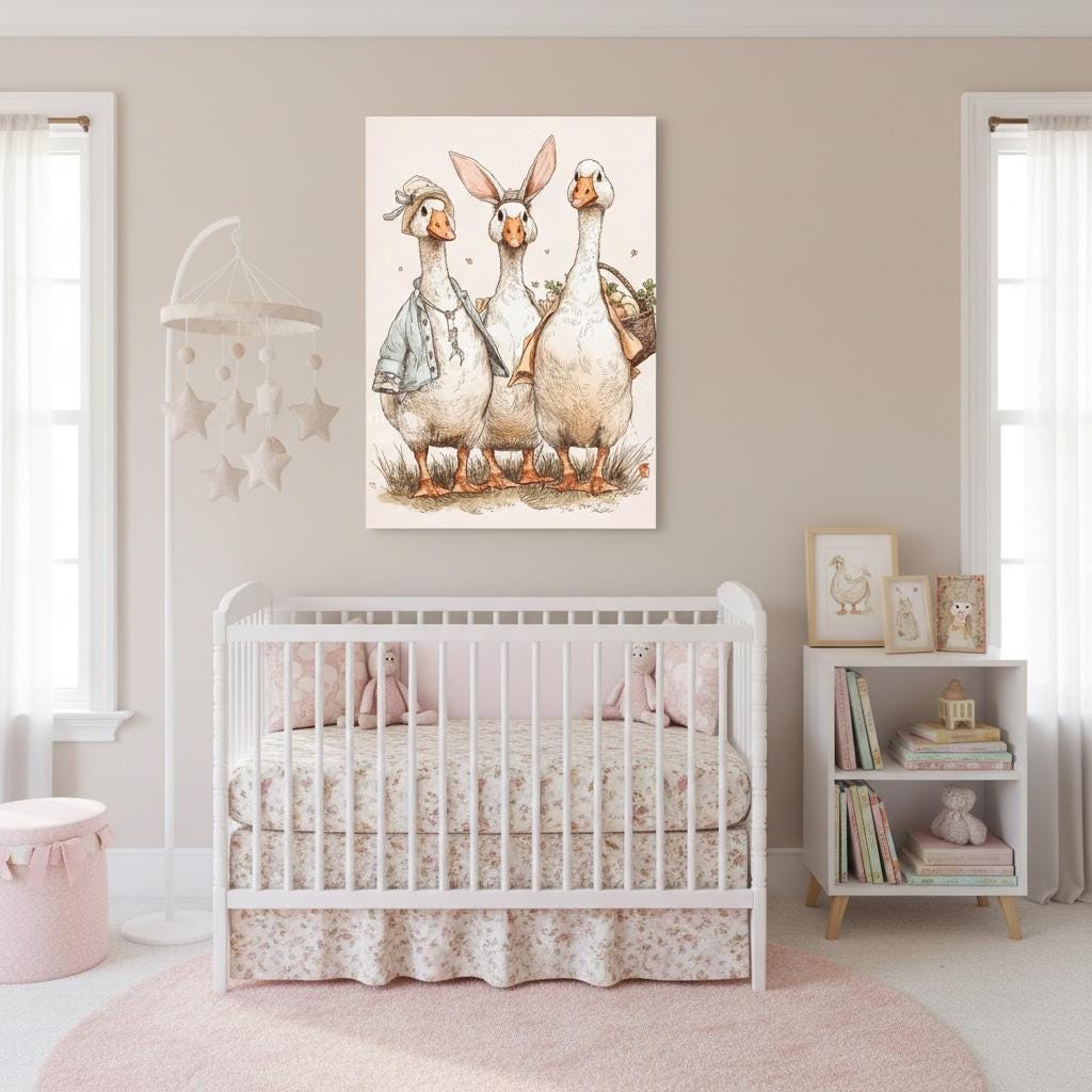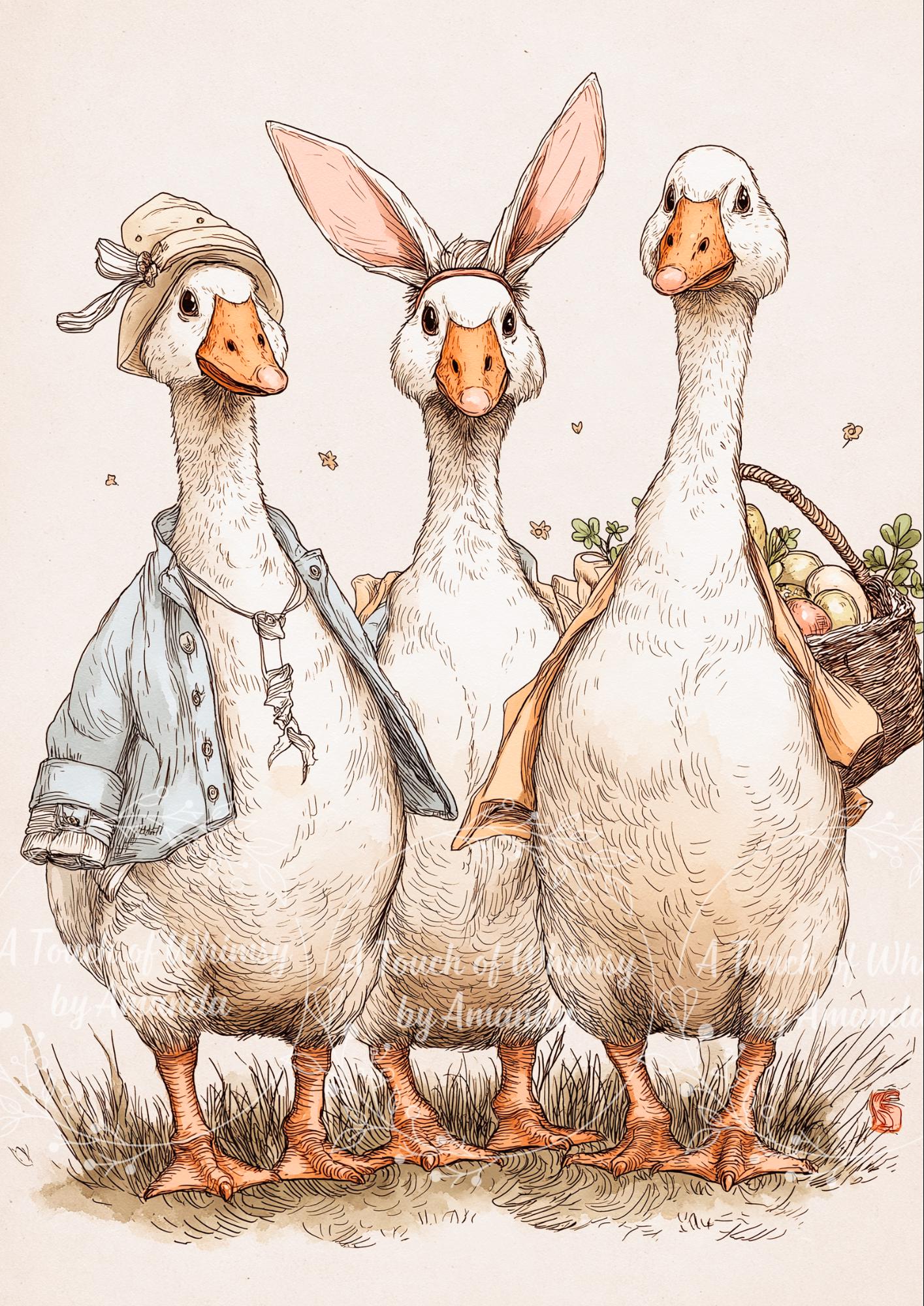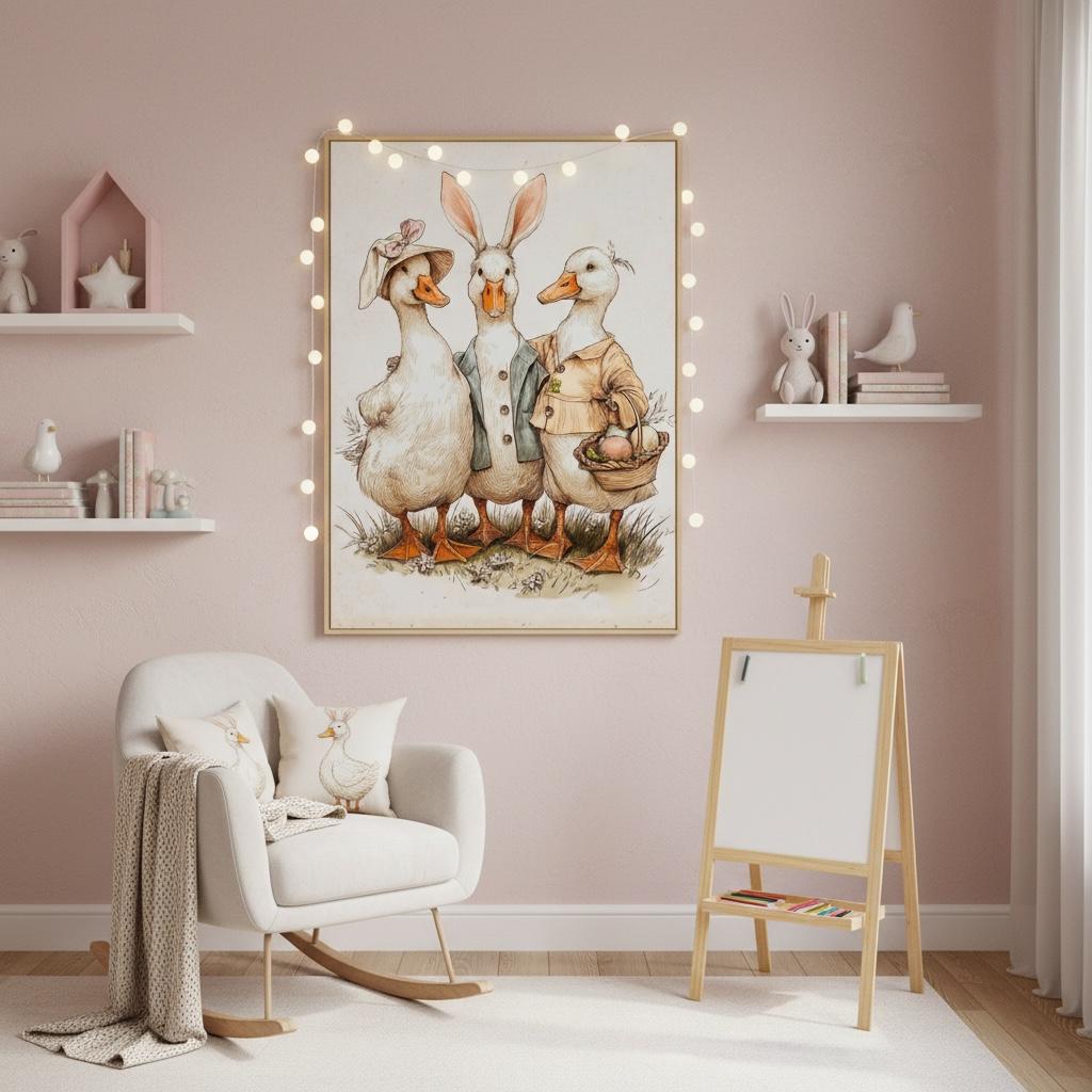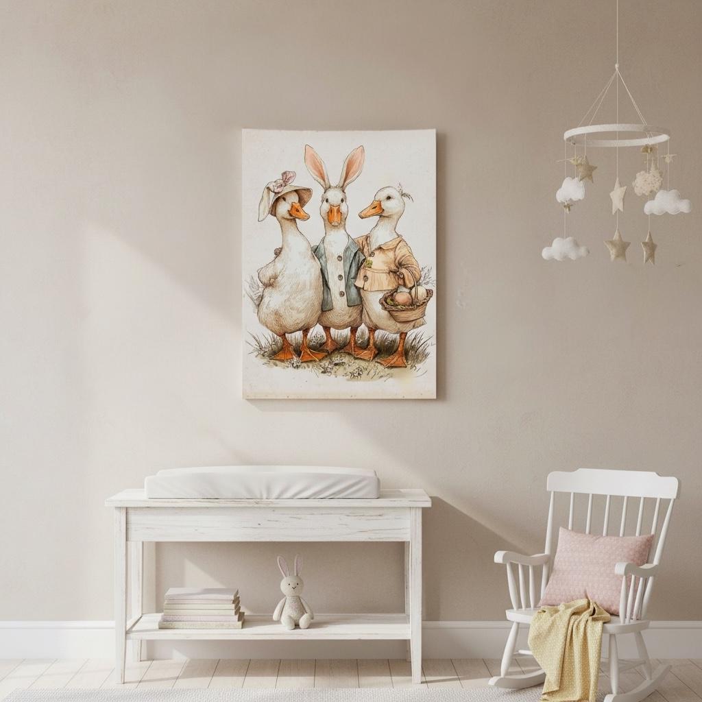 Nursery Easter Duck Decoupage Paper - Whimsical Ducks in Spring Bonnets, A4 Rice or Tissue, Nursery Ducks, DIY Easter Gift