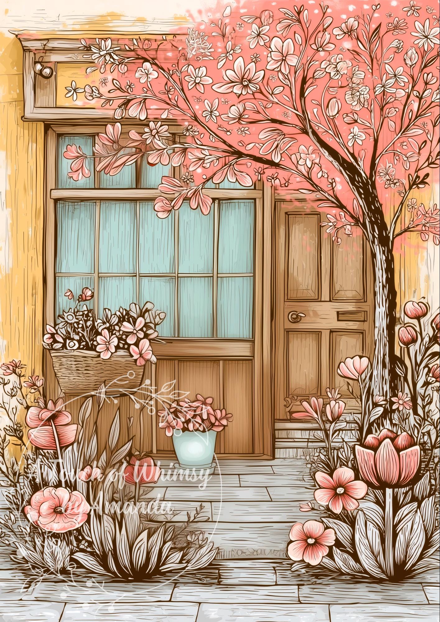Folk Art Inspired Spring Front Door Decoupage Tissue and A4 Rice Paper