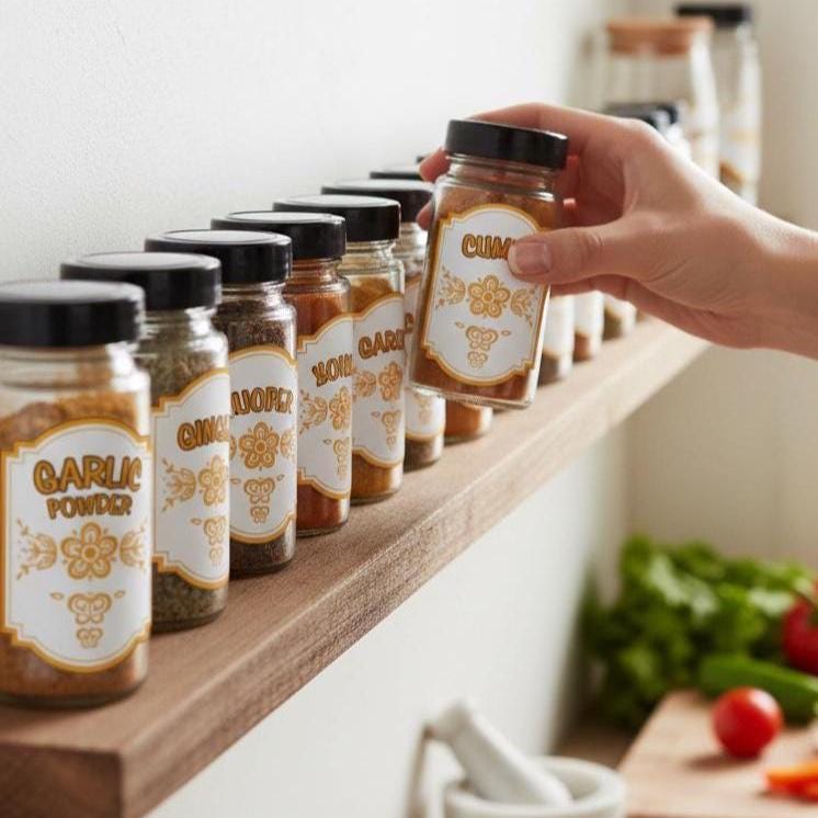 Bring the nostalgic charm of a 70s with “Butterfly Gold” kitchen spice labels! Inspired by the iconic Pyrex and Corelle patterns we all grew up with, these waterproof decals are the perfect gift for any Pyrex collector or lover of retro kitchen decor."