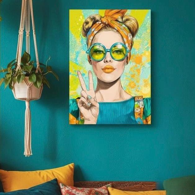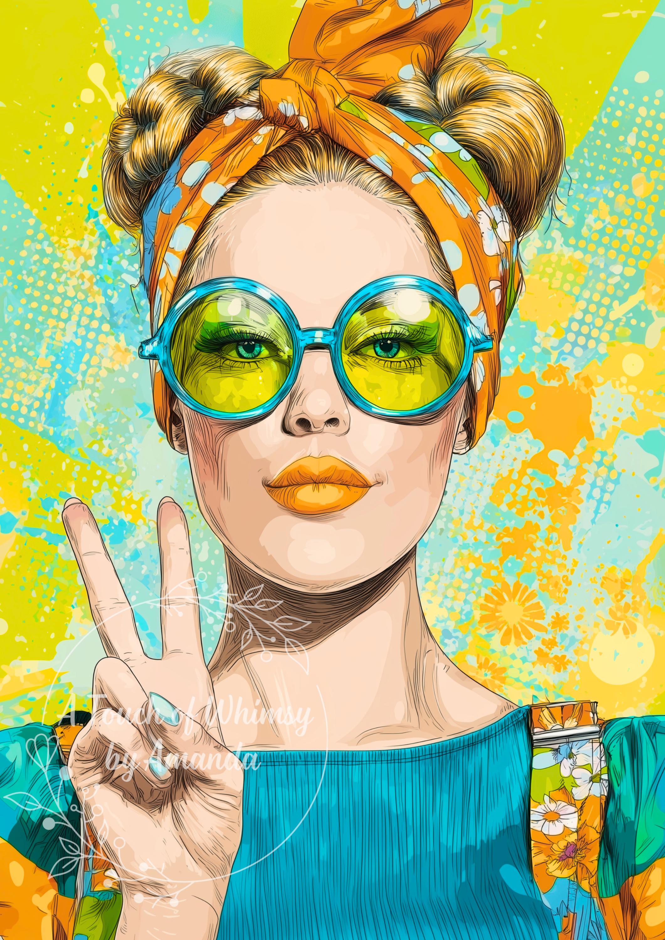 Pop Art Woman Rice Paper, Funky Glasses Decoupage Sheet, Peace Sign Mixed Media A4, DIY Upcycling Supplies, Retro Woman Decorative Paper