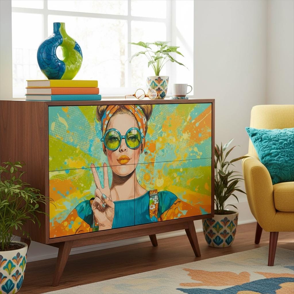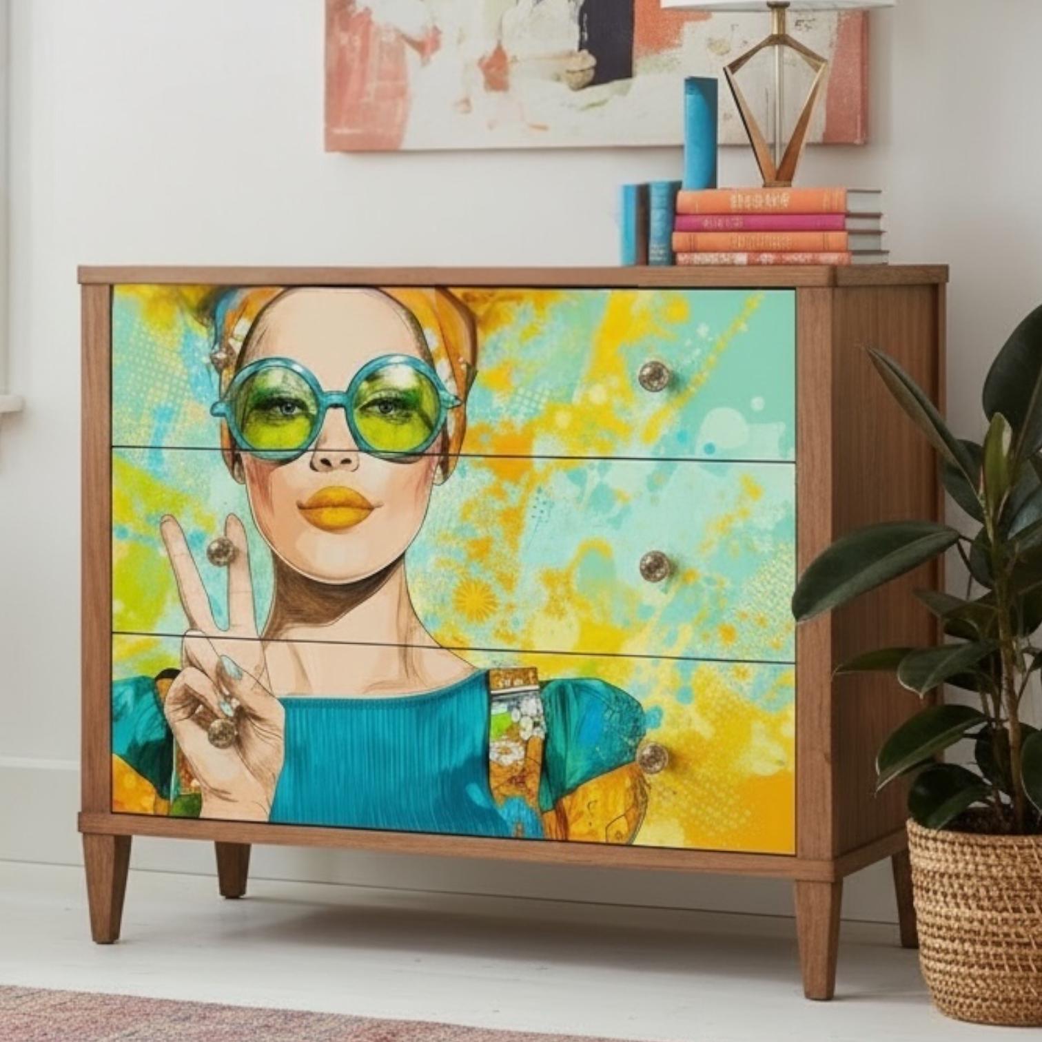This high-quality A4 rice paper features a stunning, bold woman flashing a peace sign, drenched in vibrant colors that pop. Perfect for decoupage enthusiasts, mixed media artists, and DIY lovers, this paper is thin enough to blend seamlessly into any surface yet durable enough to handle glue and varnish without tearing. Whether you're upcycling an old piece of furniture, decorating a journal cover, or creating unique wall art, this "Vivid Peace" sheet adds a modern, feminist, and fearless touch to your work.