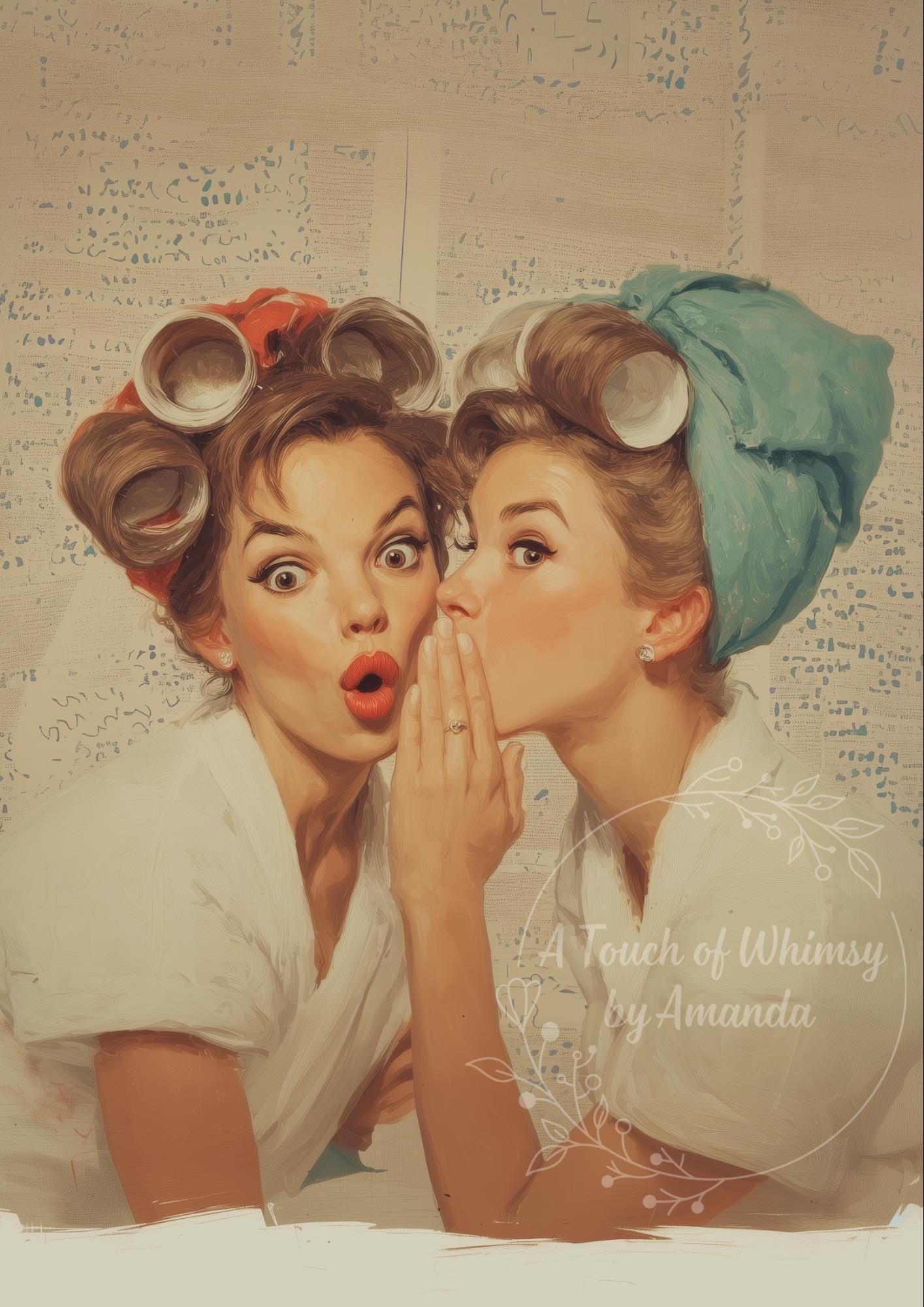Retro Ladies in Hair Curlers Decoupage Rice Paper A4 - Funny Gossip Art for Furniture Upcycling, Mixed Media & Vintage DIY Home Decor Gift