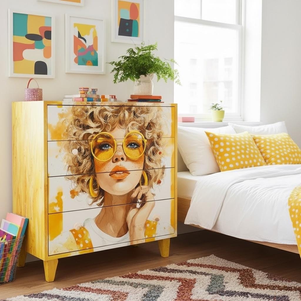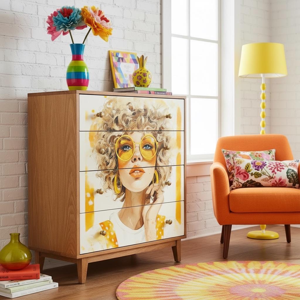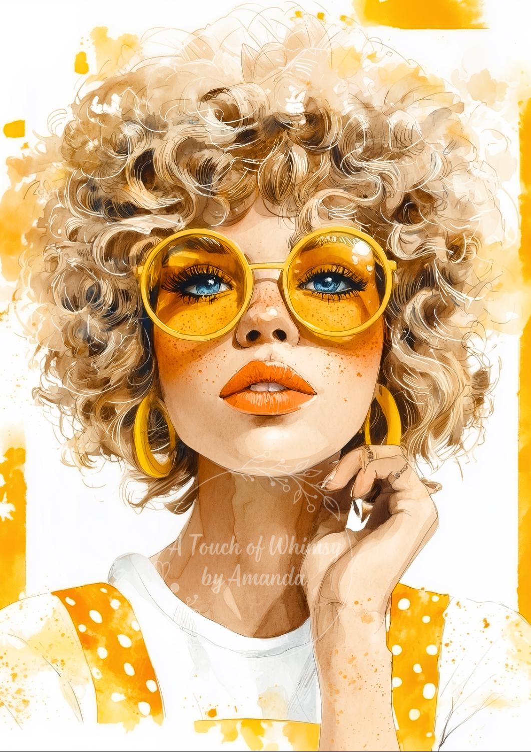 Unleash your creativity with this stunning watercolor decoupage rice paper, featuring a beautiful curly-haired woman with freckles and stylish yellow sunglasses. This A4 sheet is the perfect art supply to breathe new life into an old piece of furniture or to be the star of your next mixed-media masterpiece.