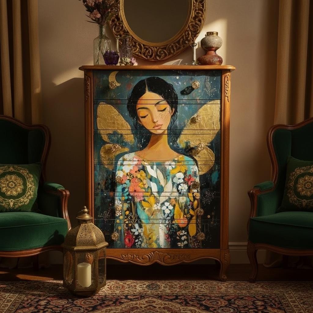 Whether you're giving an old piece of furniture a new soul, creating a mystical page in your junk journal, or designing a one-of-a-kind piece of home decor, this paper provides the perfect focal point.