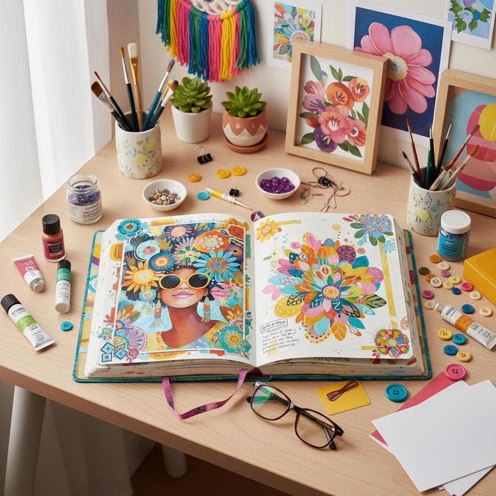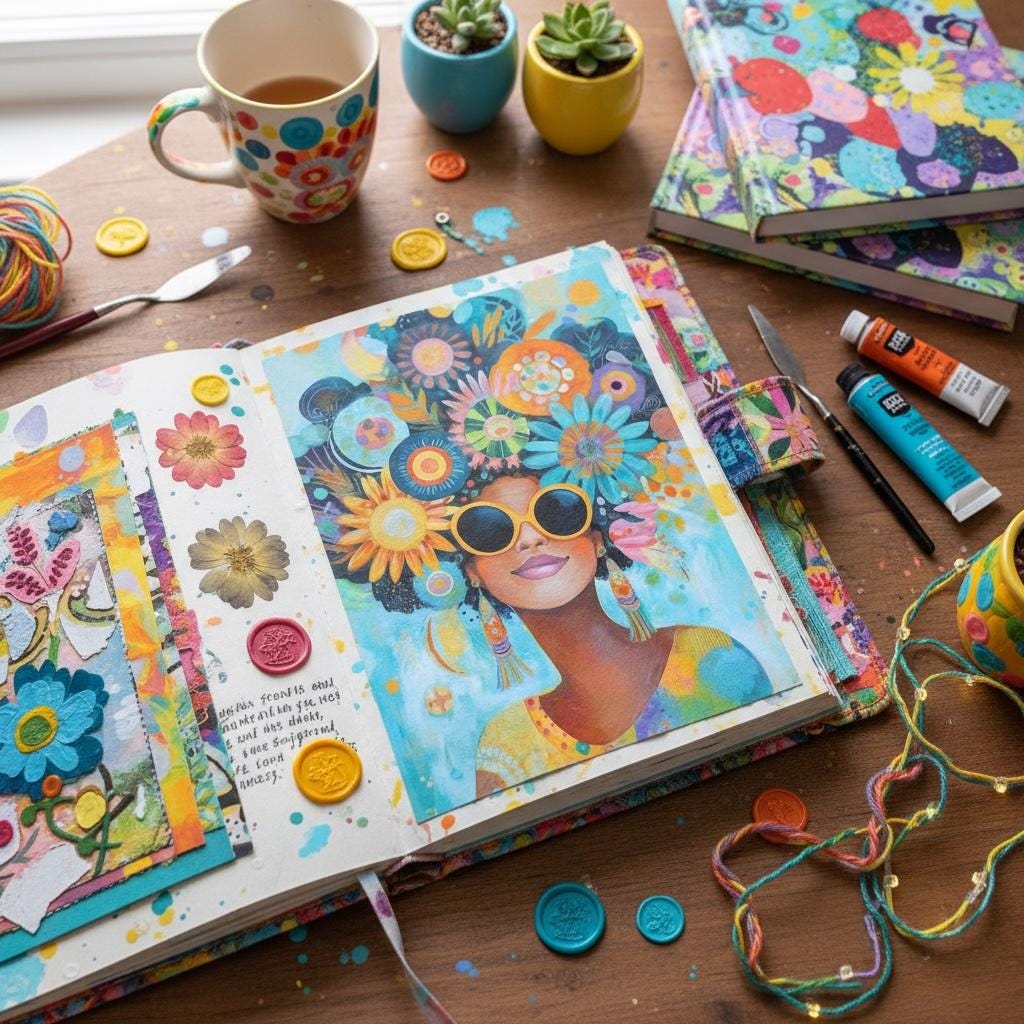 Perfect for A4 rice paper, the vibrant hues and mixed-media textures make it an eye-catching focal point for upcycled furniture or expressive art journal spreads.