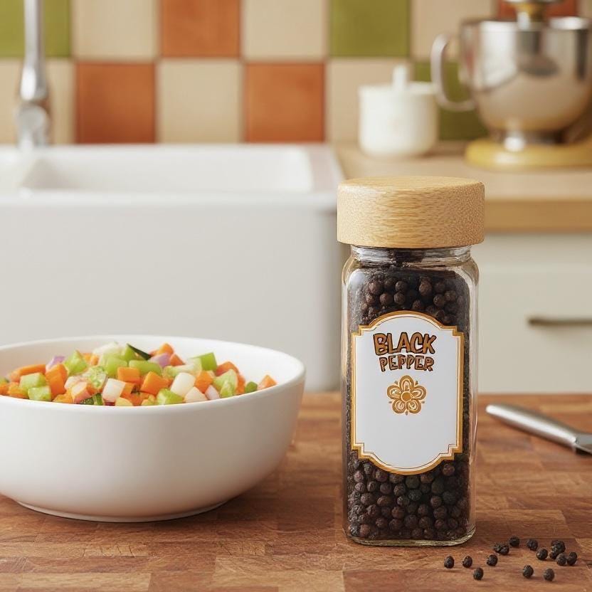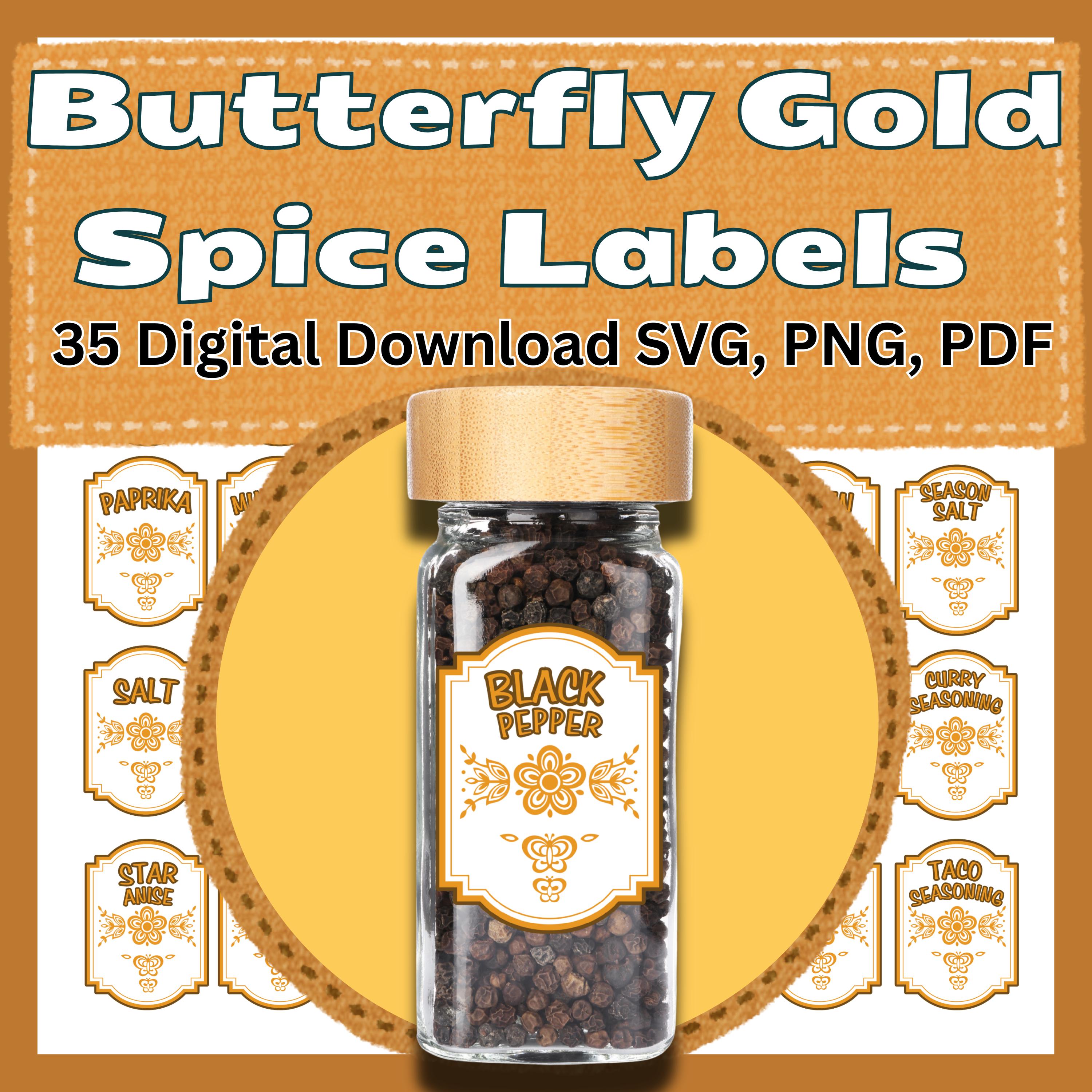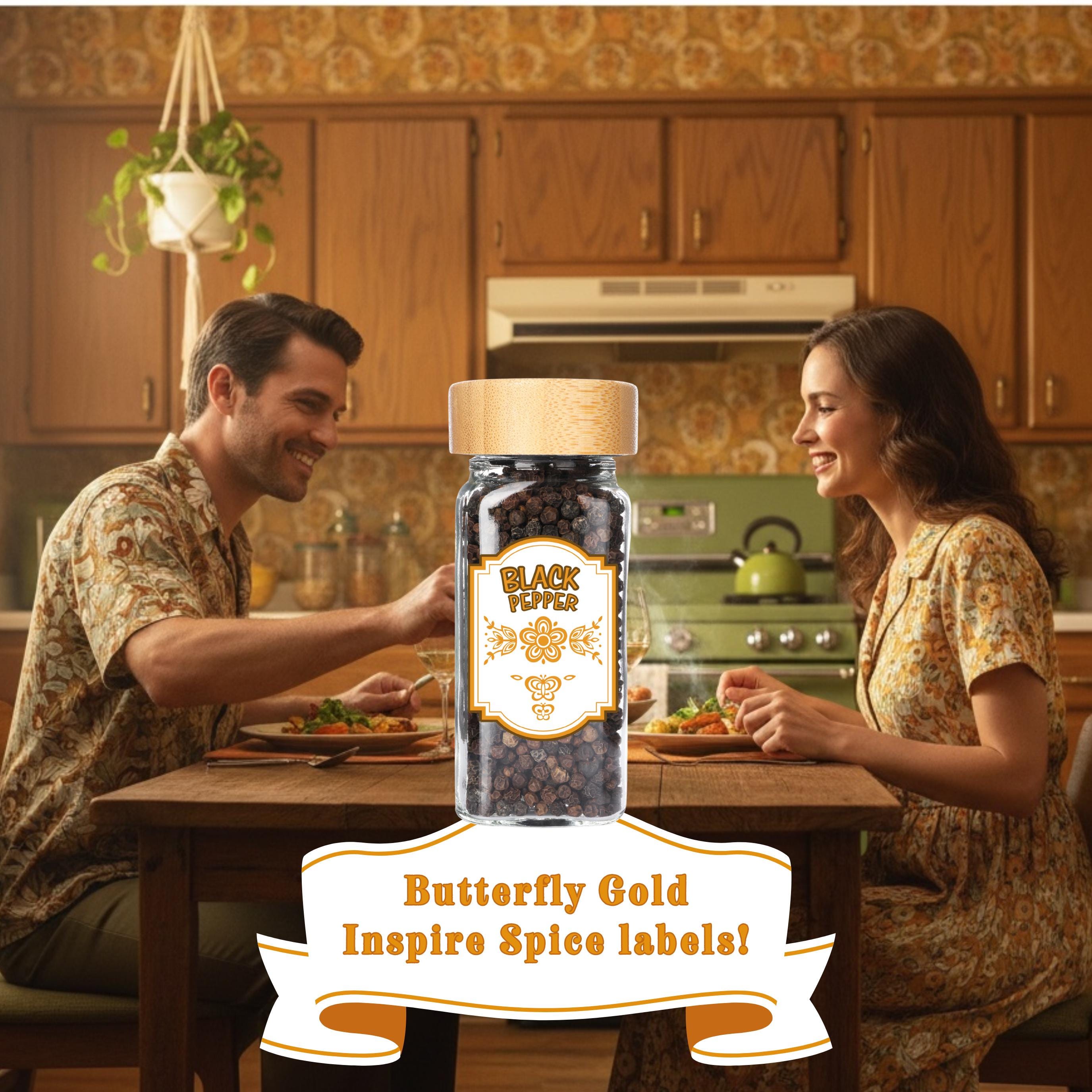 Bring the warmth of the 1970s into your pantry with these spice labels inspired by the iconic Pyrex and Corelle "Butterfly Gold" pattern! Featuring the classic butterflies and wheat sheaves in harvest gold, these labels are the perfect match for your vintage collection.