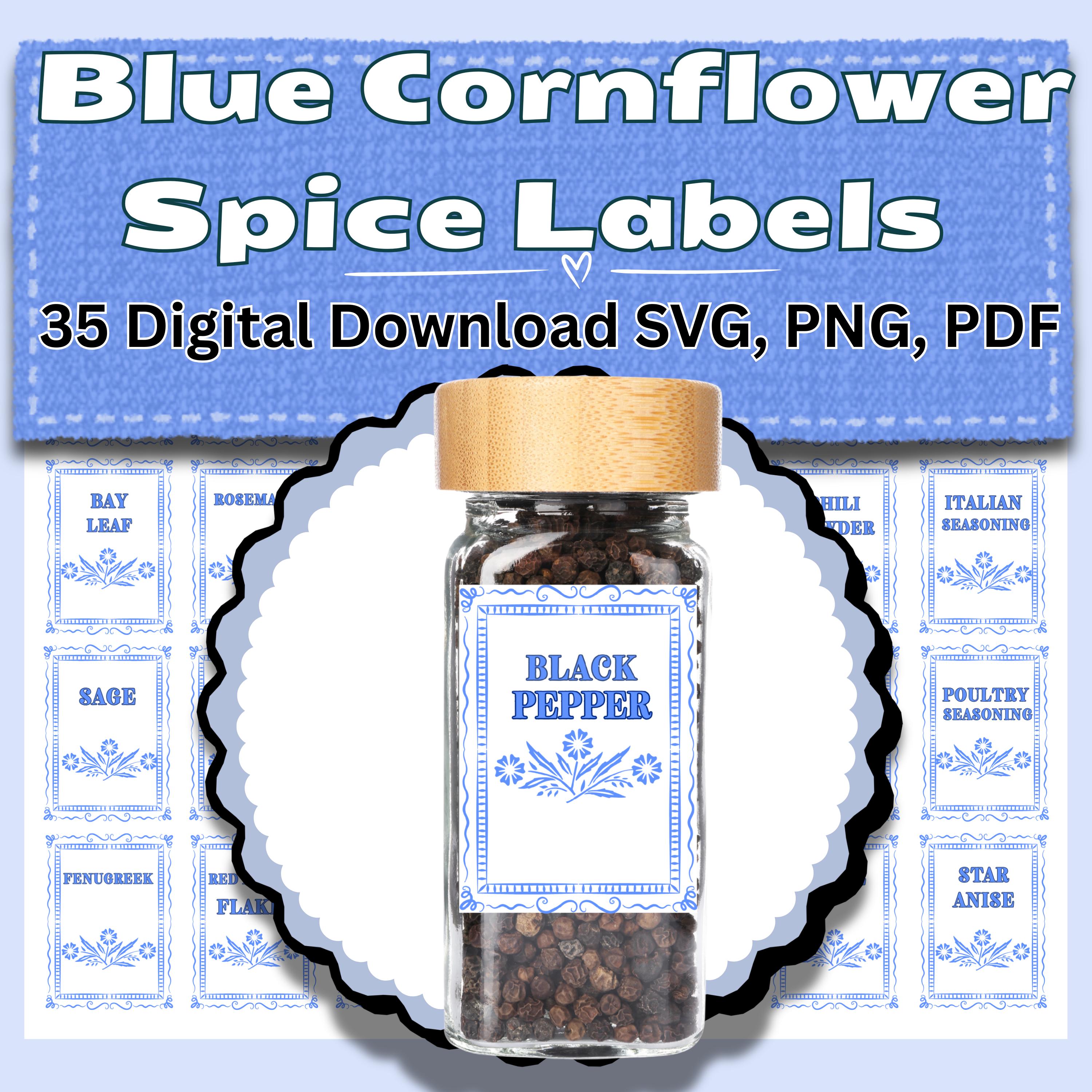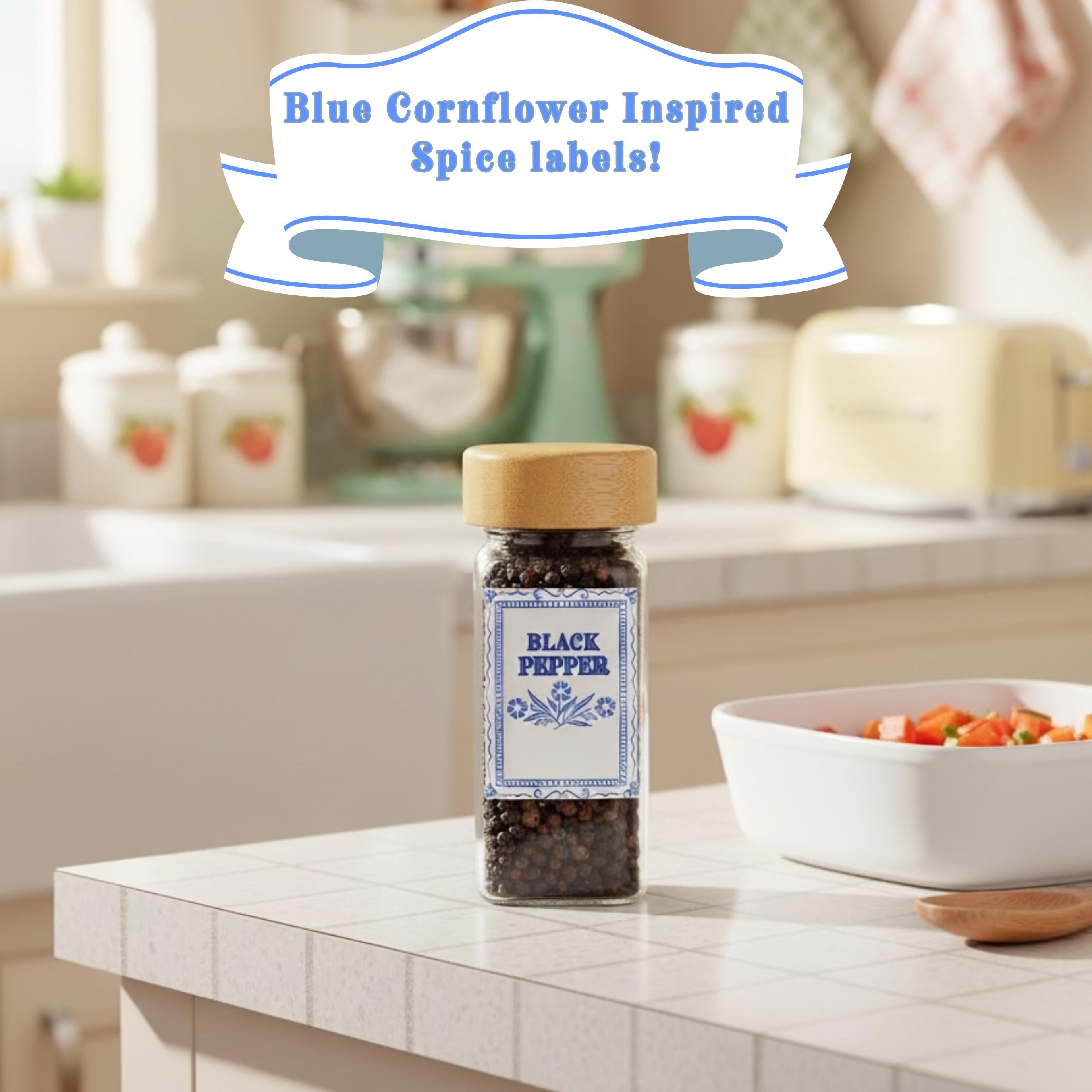 Pay homage to the most recognizable casserole dish in history with these "Cornflower Blue" spice labels! Featuring the simple yet elegant three-flower blue design on a white background, these labels are the perfect finish for a retro or mid-century modern kitchen.