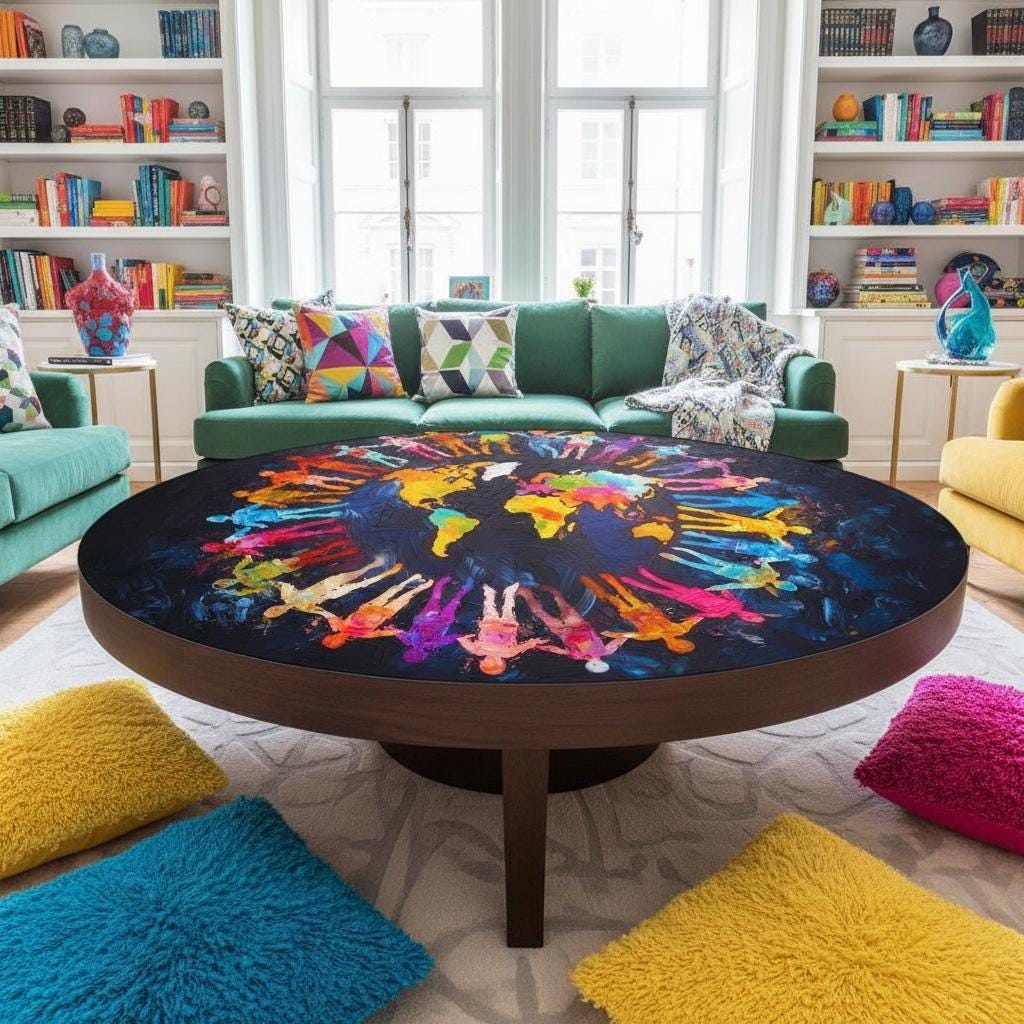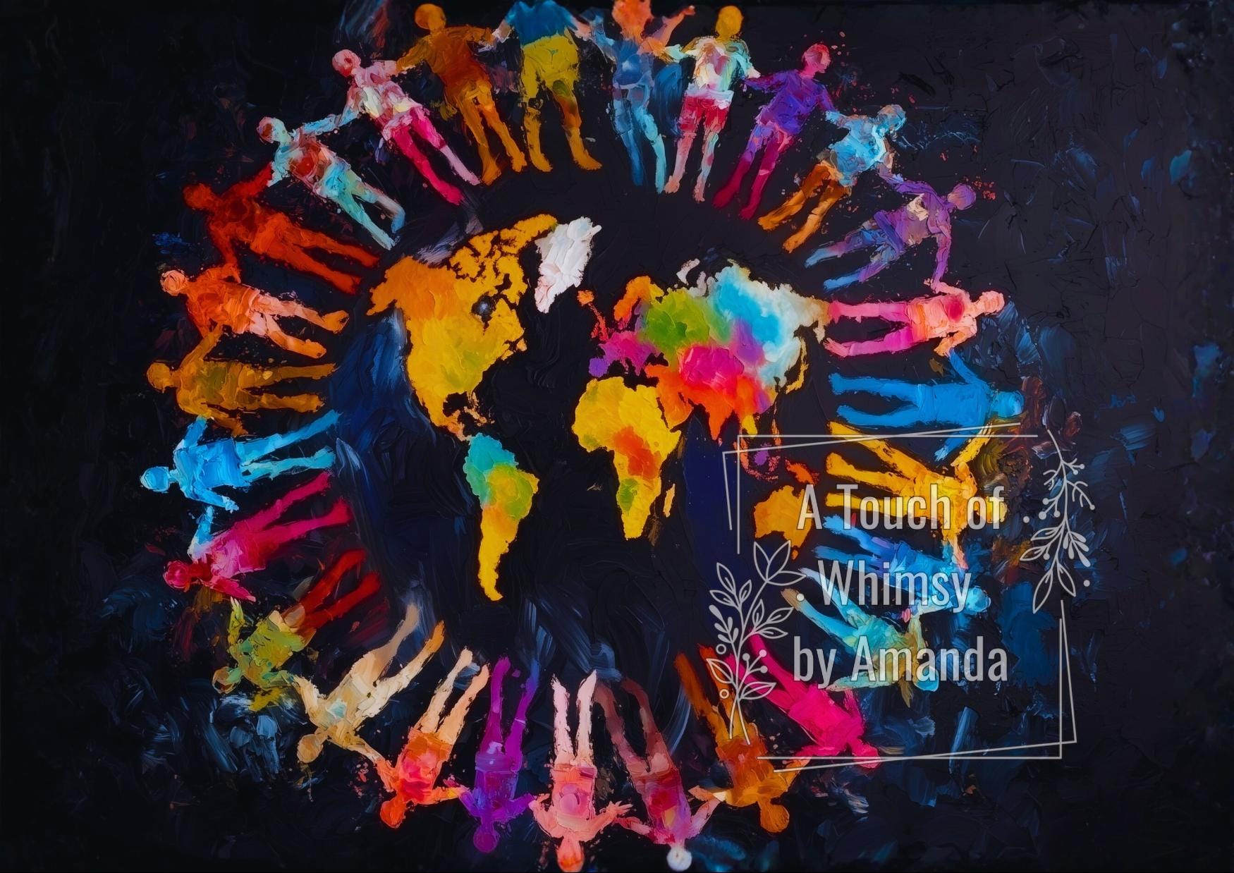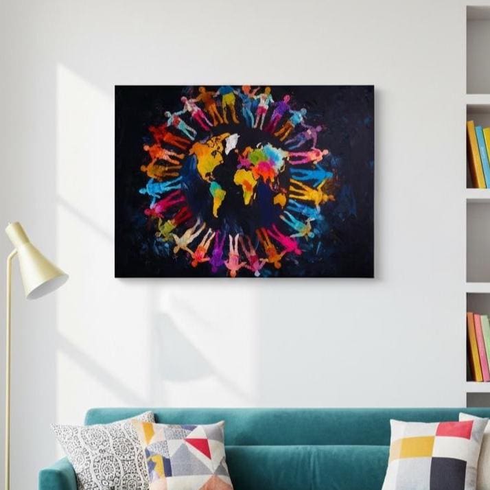 Spread a message of hope and connection. This poignant A4 rice paper features an artistic oil painting of the Earth surrounded by colorful figures holding hands—a beautiful symbol of coming together to find peace amidst the chaos. Perfect for meaningful mixed media art, journals, and statement furniture pieces.