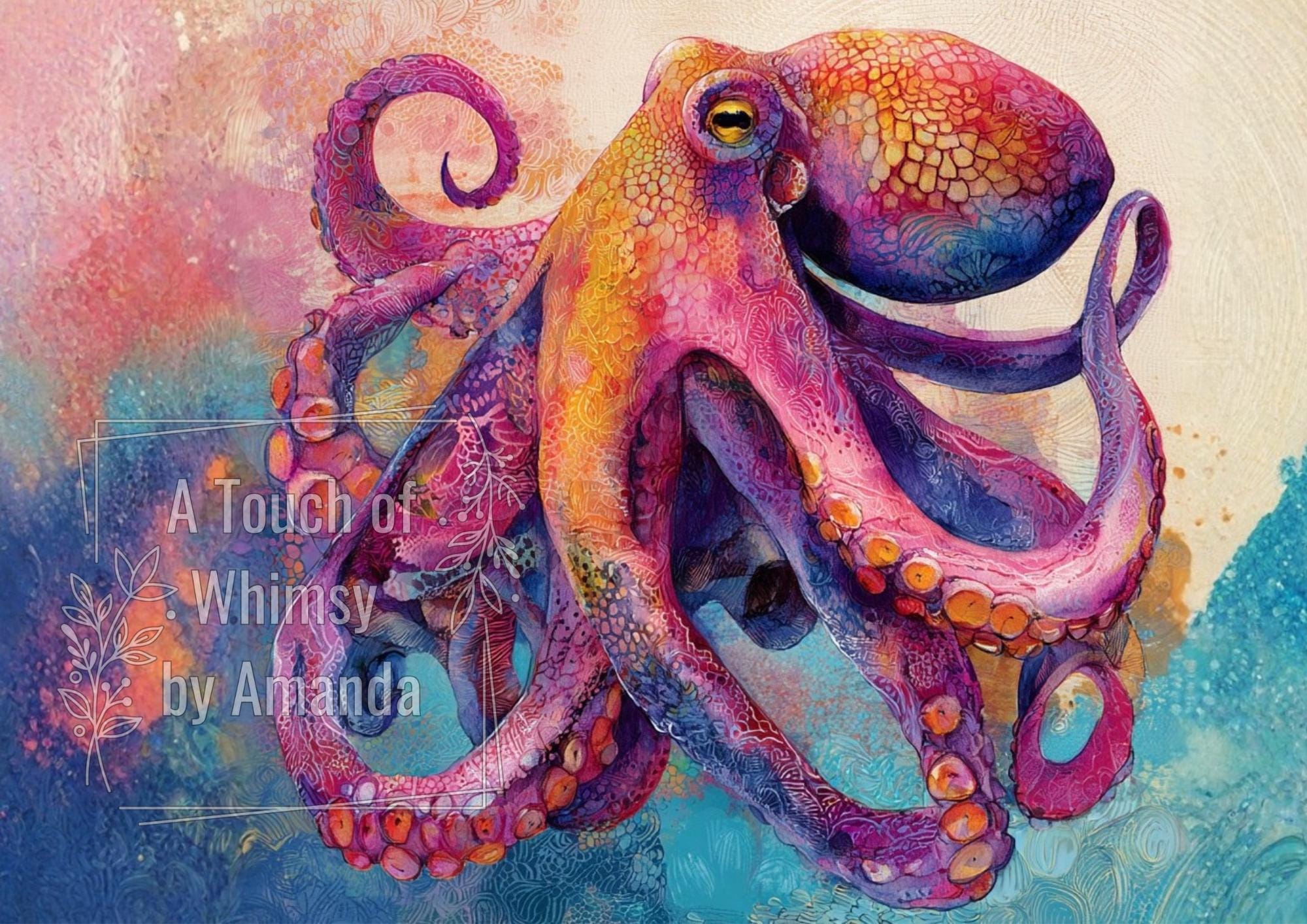 Bring the magic of the ocean to your creative projects with this exquisite A4 decoupage rice paper. Featuring a stunning watercolor print of a mystical octopus, this design blends intricate artistry with a touch of boho charm. Perfect for furnitureMakeovers, junk journals, scrapbooking, mixed media art, and more. Ignite your imagination with this unique and vibrant craft paper!