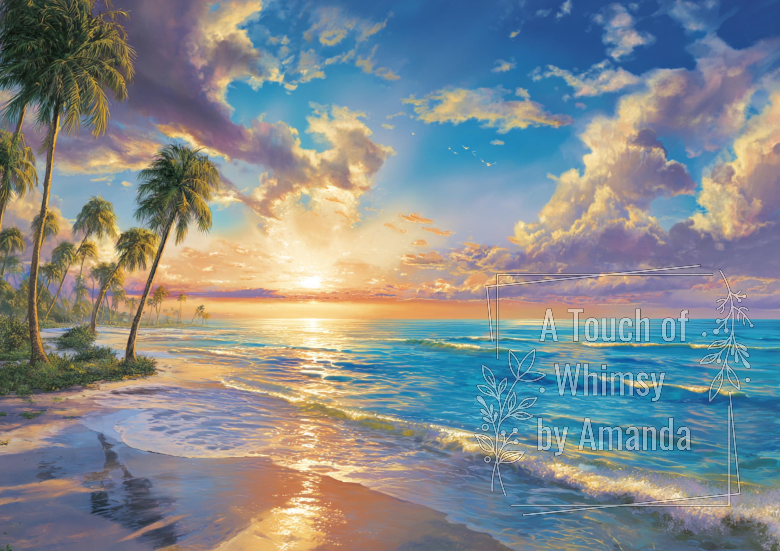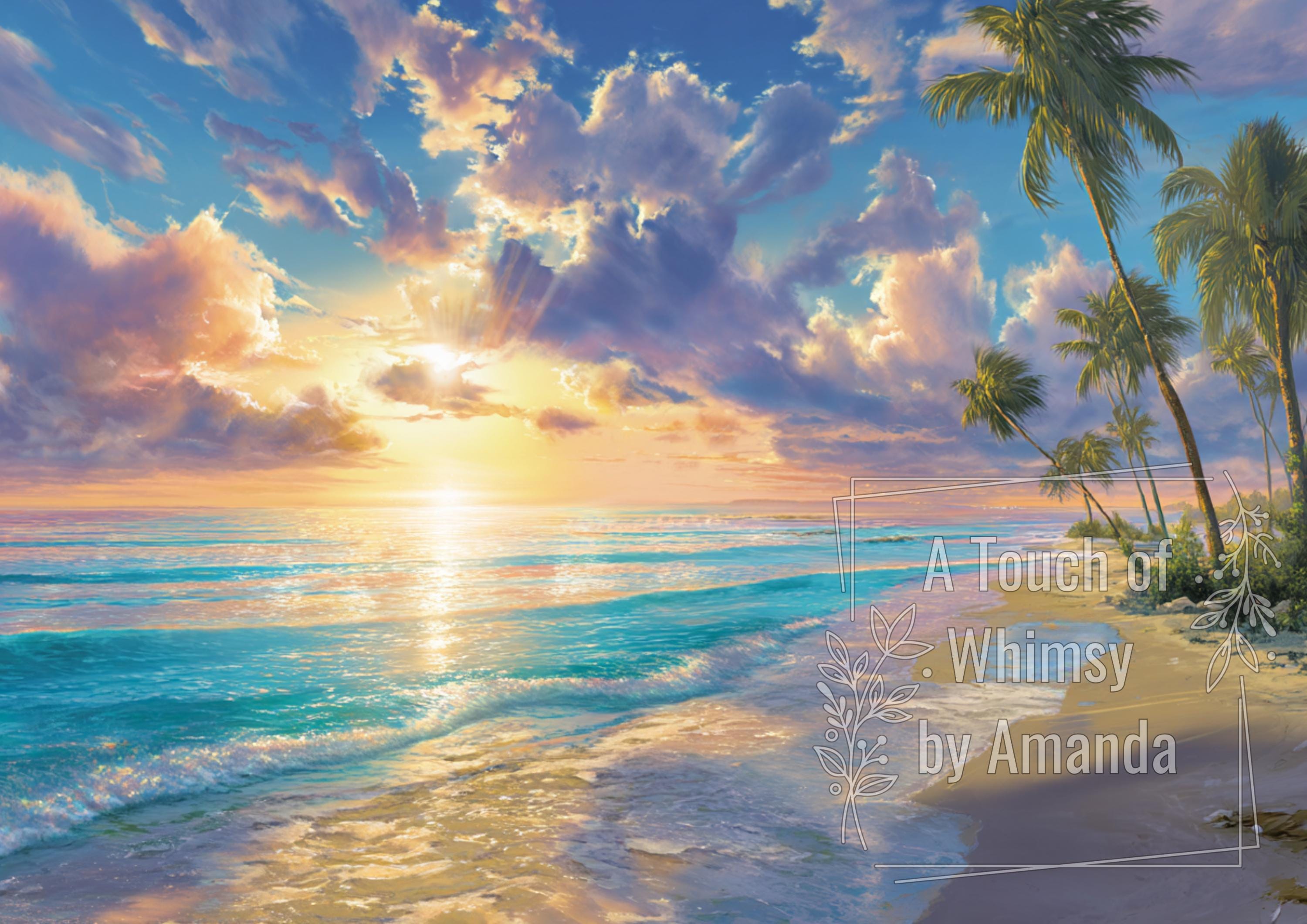 Capture the energy of the ocean with this stunning "Sun & Crashing Waves" painted decoupage paper.